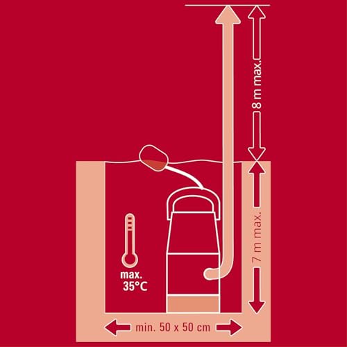 Die GC-DP 7035 LL erreicht eine maximale Förderhöhe von 8 Metern und kann bis zu einer Tiefe von 7 Metern ins Wasser eingetaucht werden. Dies bietet grosse Flexibilität für tiefe Keller, Gruben oder Zisternen.