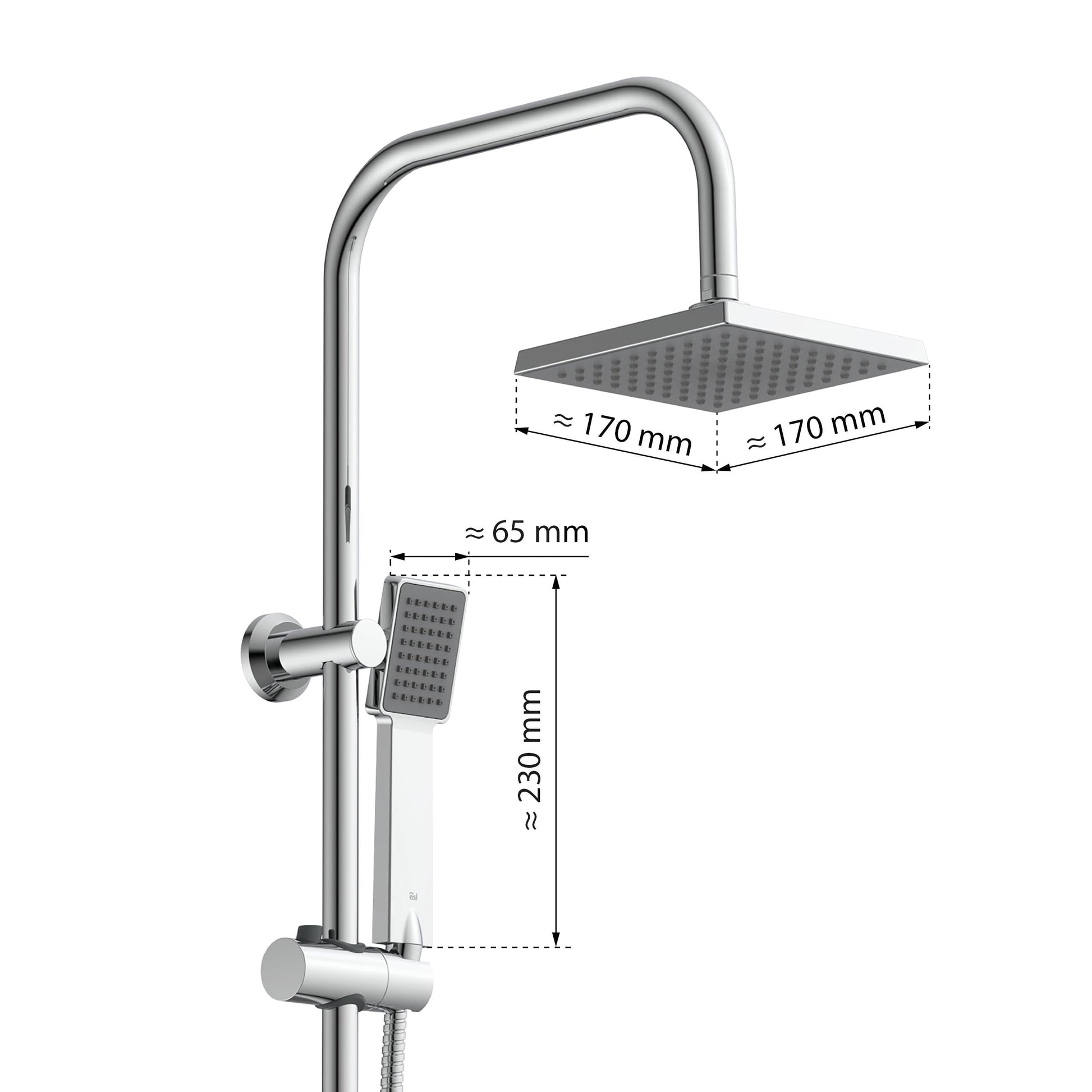 - Grosse Kopfbrause: Ein Duschkopf im Format 176 x 176 mm sorgt für ein grossflächiges, entspannendes Regenduschen-Erlebnis.