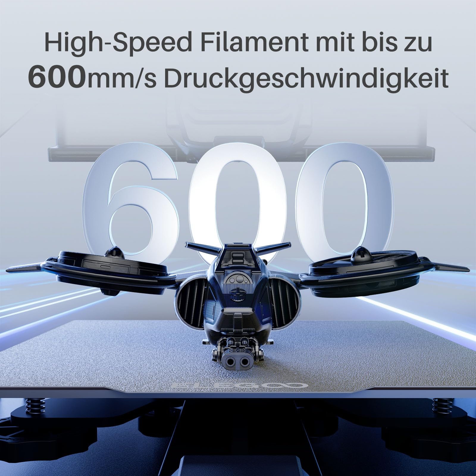 - Beeindruckende Druckgeschwindigkeit: Erreicht Geschwindigkeiten von bis zu 600 mm/s durch schnelles Schmelzen und einen gleichmässigen Materialfluss, was die Druckzeit erheblich verkürzt.