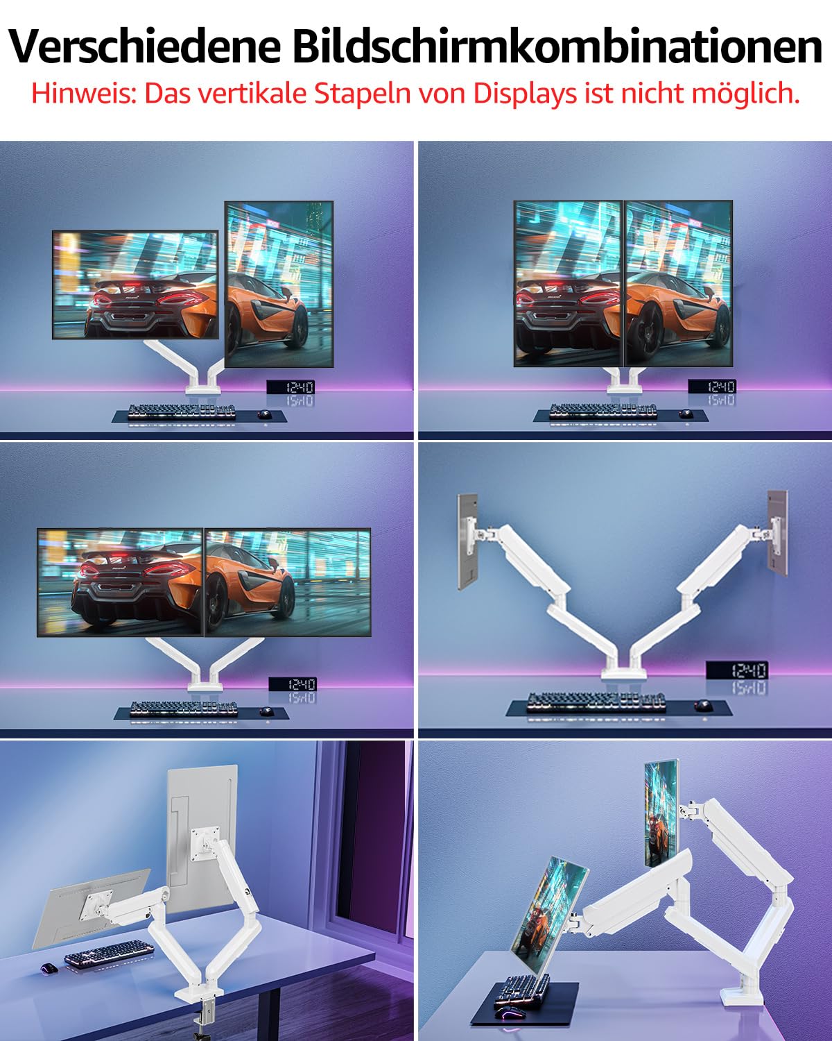 - Universelle Passform: Geeignet für zwei flache oder gebogene Monitore von 13 bis 32 Zoll mit einem Gewicht von 2 bis 9 kg pro Arm.