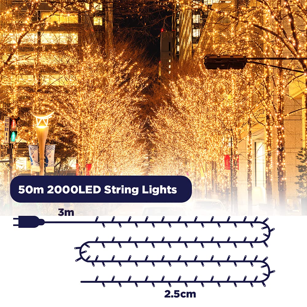 ELKTRY Cluster Lichterkette 2000 LED Aussen IP44 50m Warmweiss