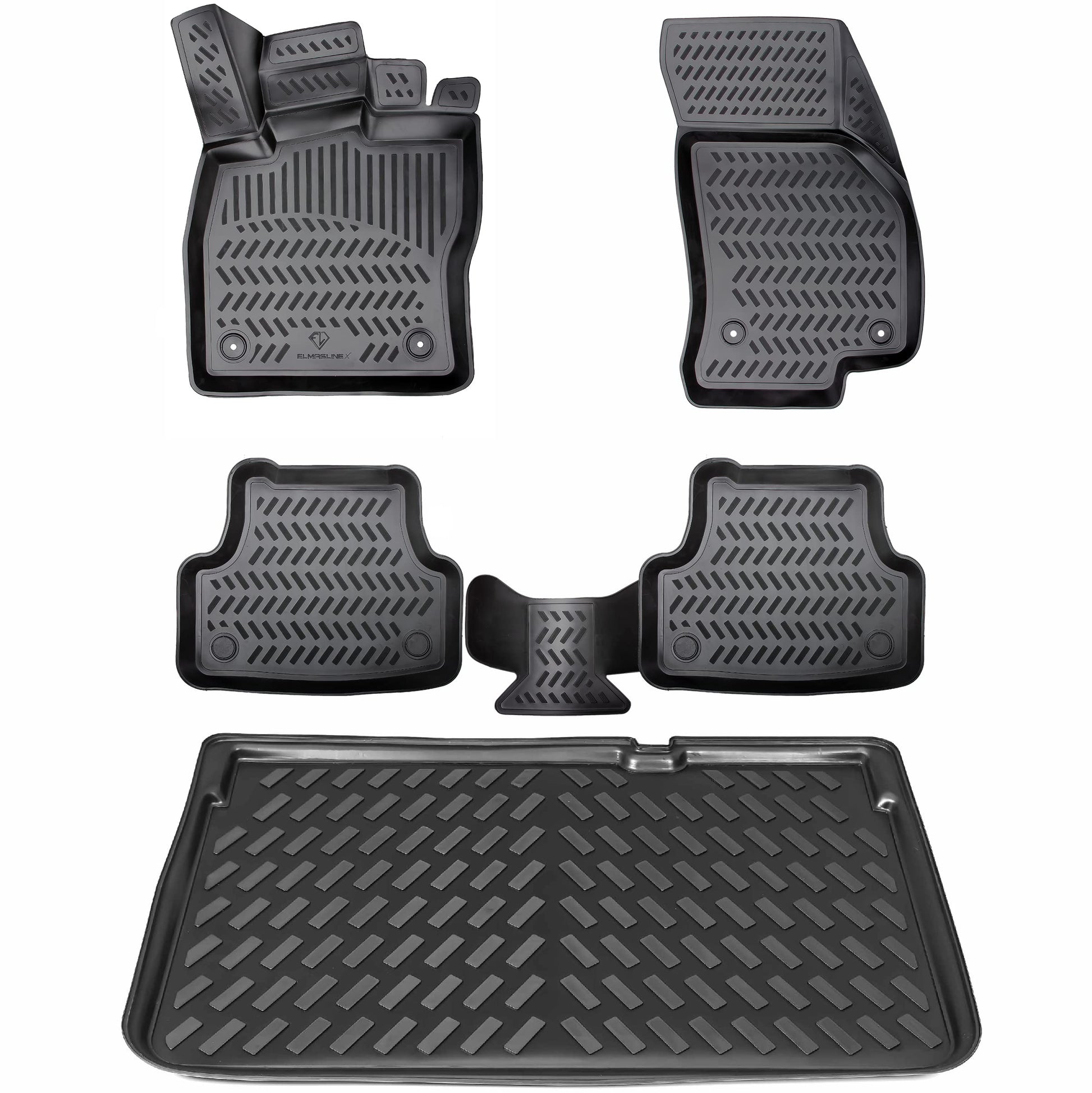 - Inhalt: ELMASLINE 3D Gummifussmatten-Set (für vorne und hinten) sowie eine ELMASLINE Kofferraumwanne.