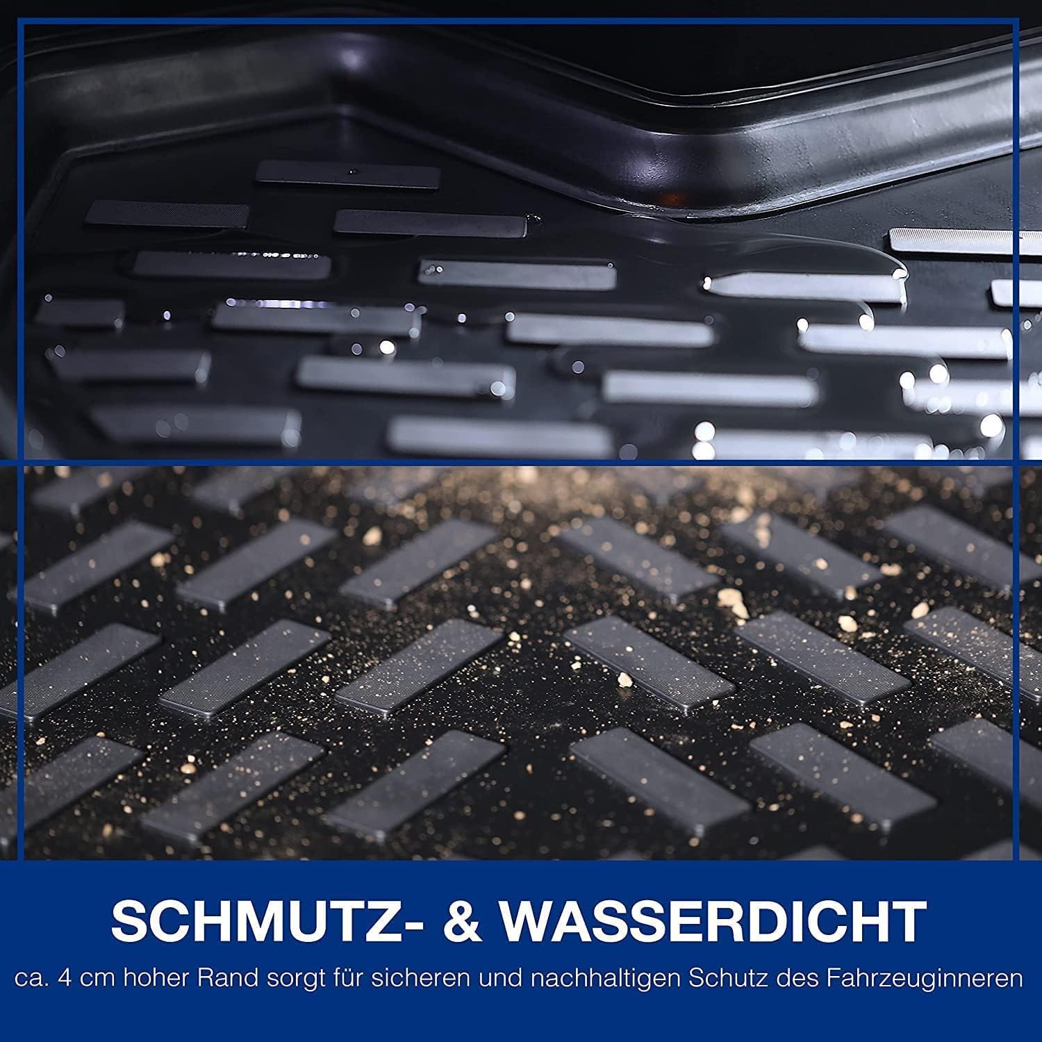 - Hoher Schutzrand: Ein durchgehender, ca. 5 cm hoher Rand hält Flüssigkeiten, Schmutz und Schnee zuverlässig zurück und schützt den Originalteppich.