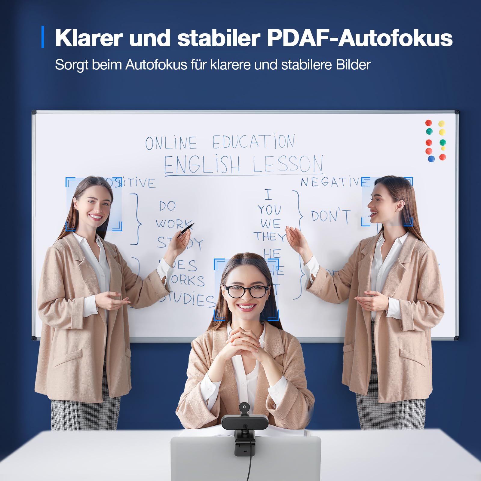 Präsentieren Sie sich in jedem Videocall von Ihrer besten Seite. Die ultrahohe 4K-Auflösung stellt sicher, dass Mimik und Details klar erkennbar sind, was die virtuelle Kommunikation persönlicher und effektiver macht. Ihre Gesprächspartner werden den Unterschied sofort bemerken.