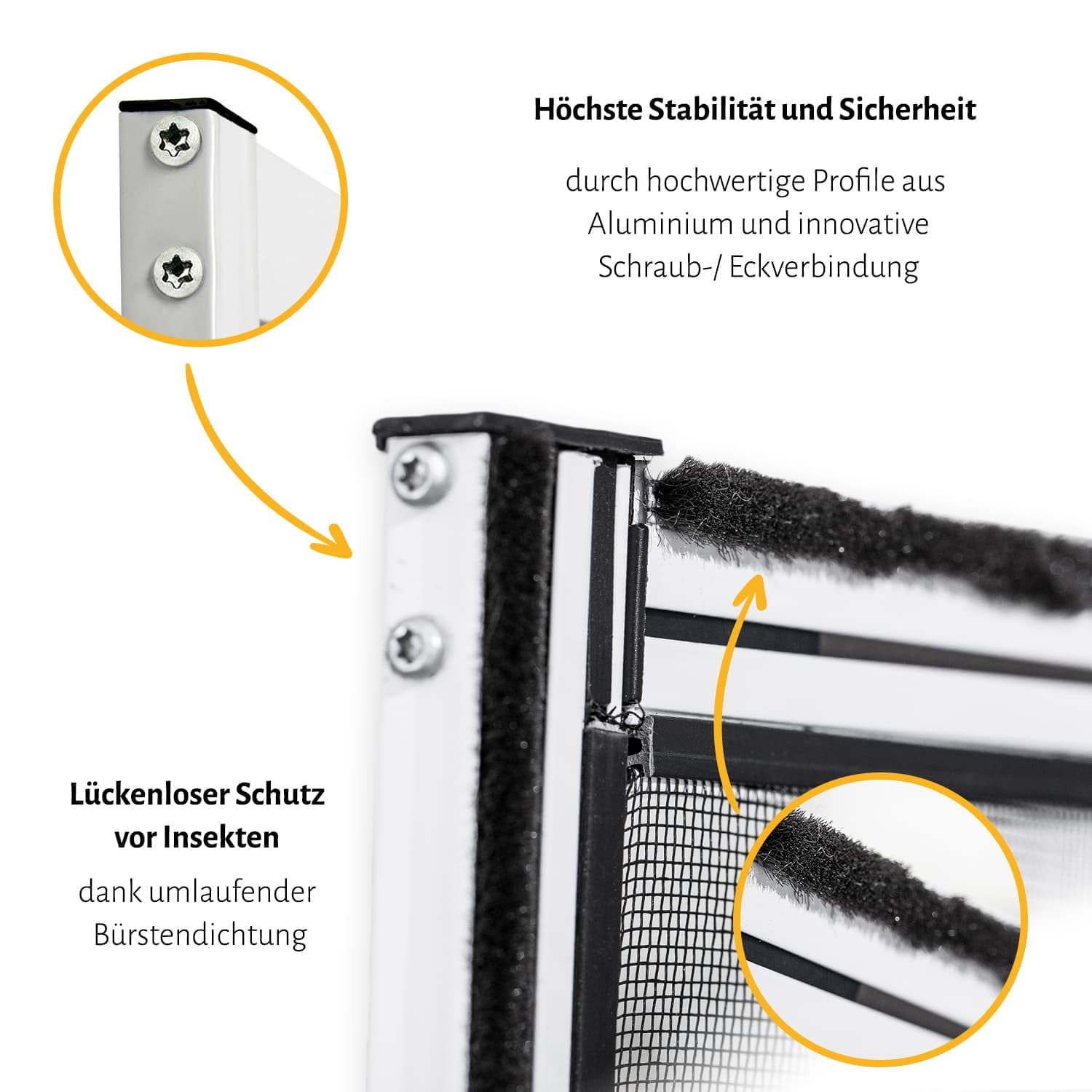 - Effektiver Insektenschutz: Das engmaschige, schwarze Filatec-Gewebe und eine umlaufende Bürstendichtung lassen Plagegeistern keine Chance.