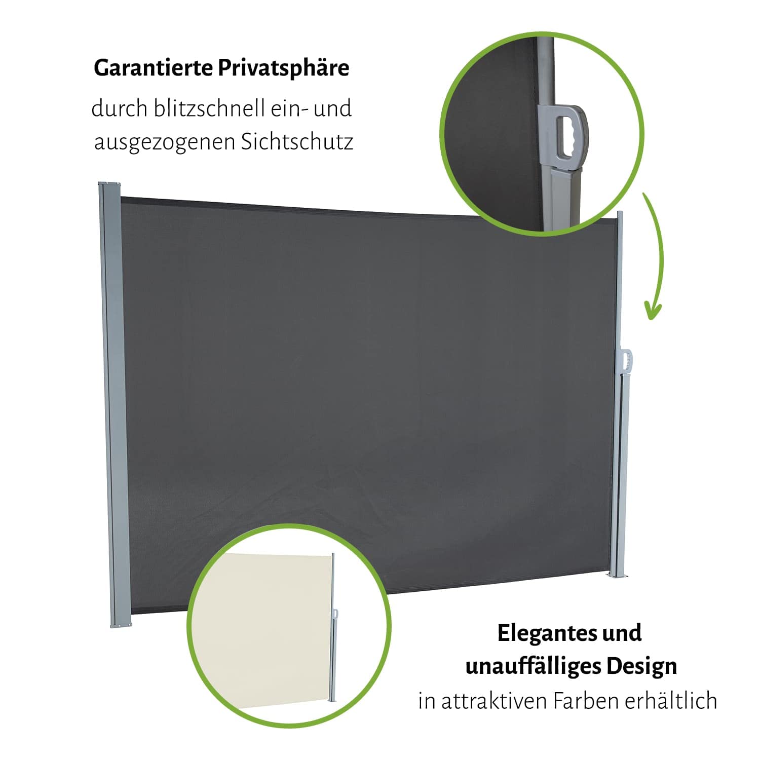 - Multifunktionaler Schutz: Dient als effektiver Sichtschutz vor unerwünschten Blicken, schirmt vor leichtem Wind ab und spendet seitlichen Sonnenschutz.