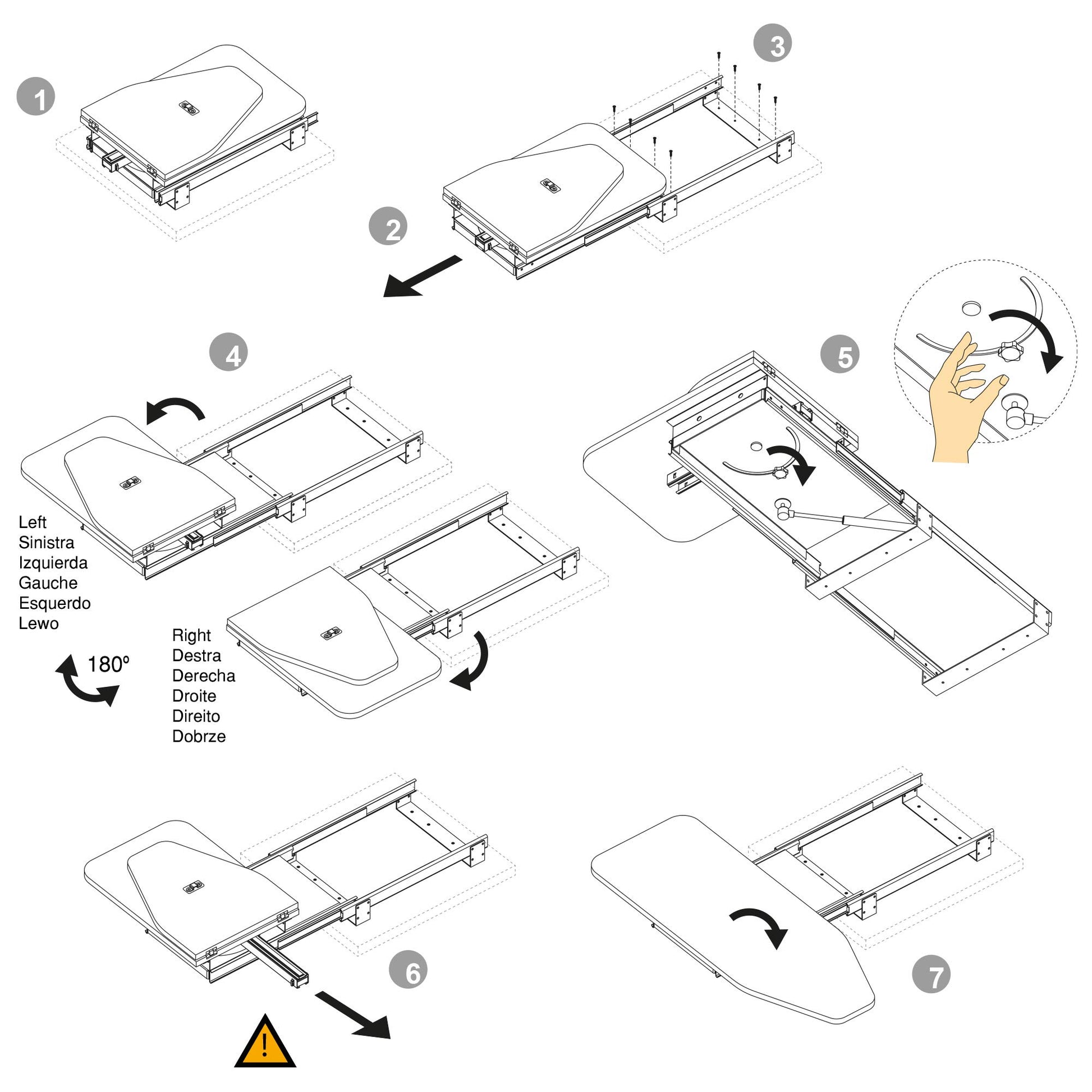 - Wichtiger Montagehinweis: Für eine optimale Stabilität ist das Entfernen der Führungsschiene unter dem Tisch gemäss Montageanleitung (Schritt 6) zwingend erforderlich.