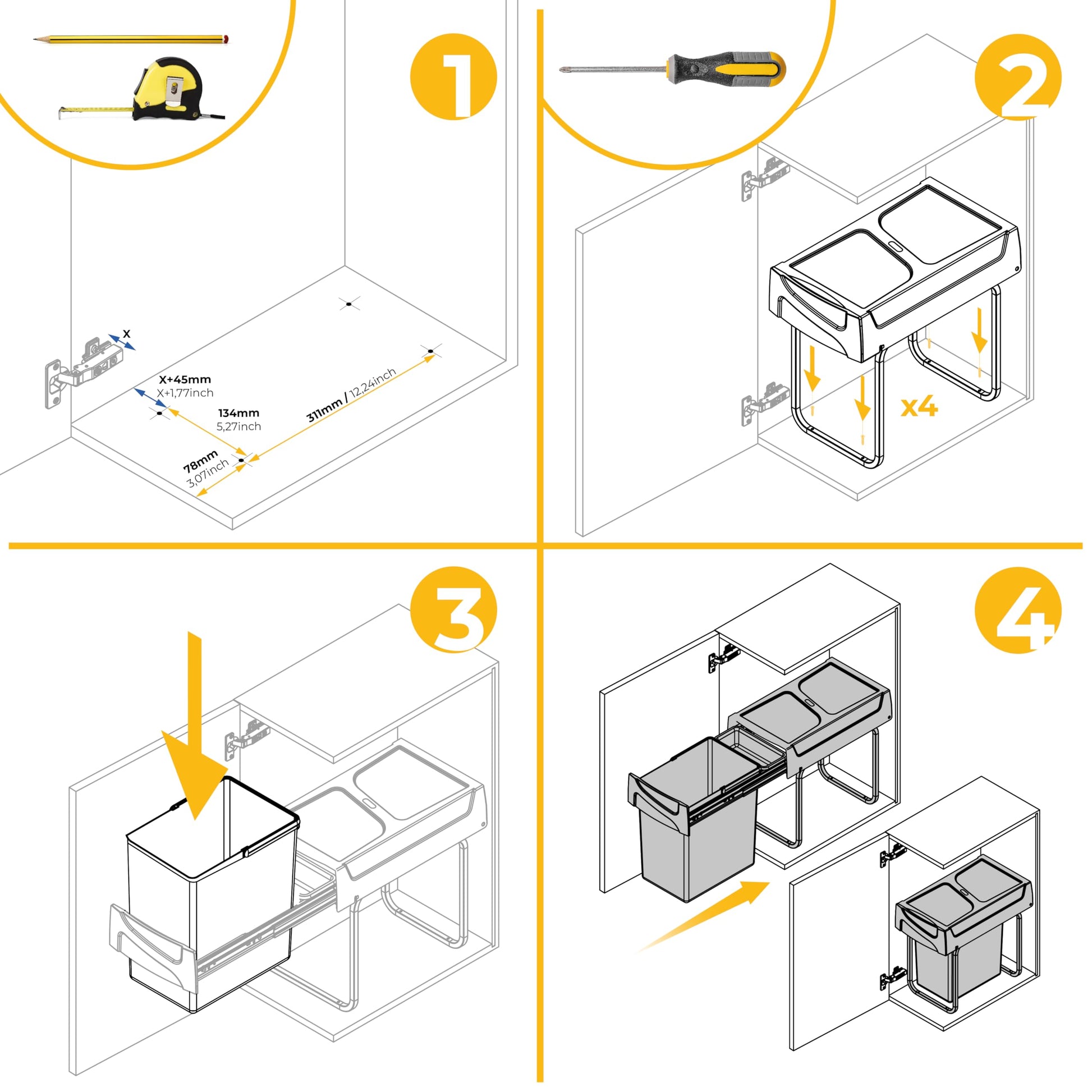 Mit diesem durchdachten Einbau-Abfalleimer schaffen Sie mühelos Ordnung und nutzen den Platz in Ihrem Küchenunterschrank optimal aus.