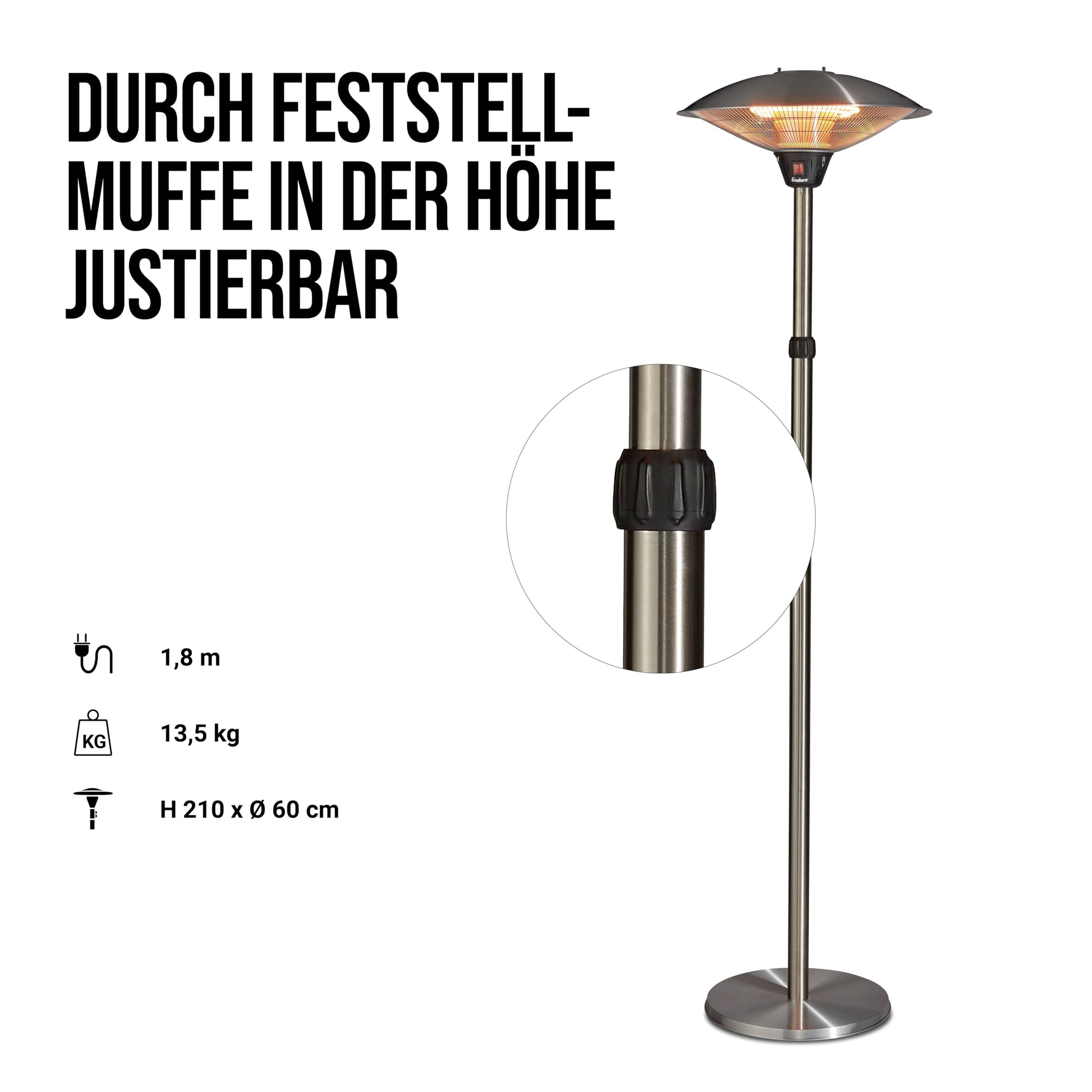 - Elegantes Design: Gefertigt aus hochwertigem Edelstahl, besticht der Heizstrahler durch seine moderne und stilvolle Optik.