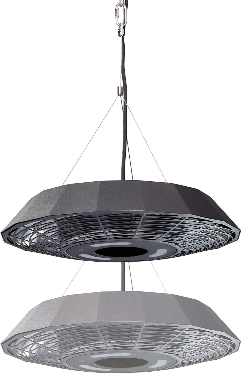 Die Deckenmontage ist besonders platzsparend, da keine Stellfläche am Boden benötigt wird. Das moderne, schlanke Design aus Aluminium und Edelstahl fügt sich elegant in jede Umgebung ein und sorgt für eine gezielte Wärmeverteilung von oben.