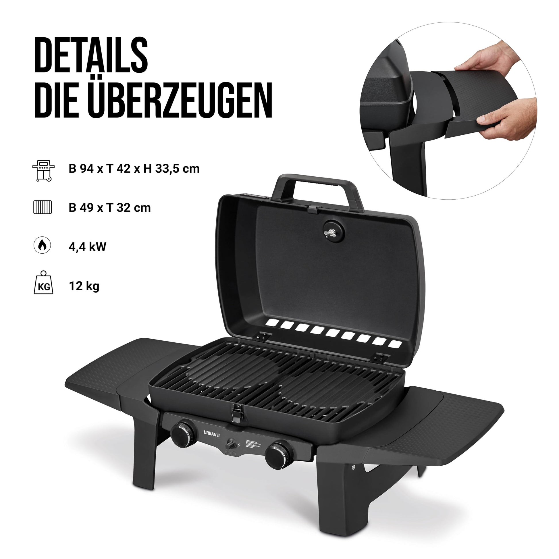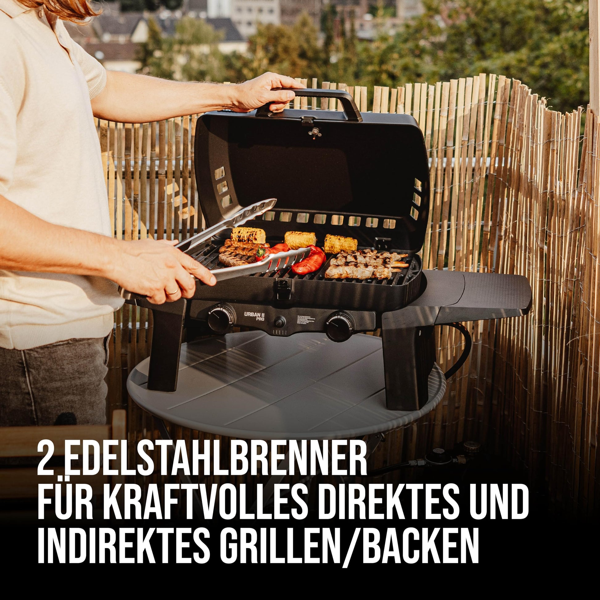 Dieser kompakte und vielseitige Gasgrill ist die ideale Lösung für genussvolles Grillieren, Kochen und Backen auf dem Balkon, beim Camping oder im Garten.