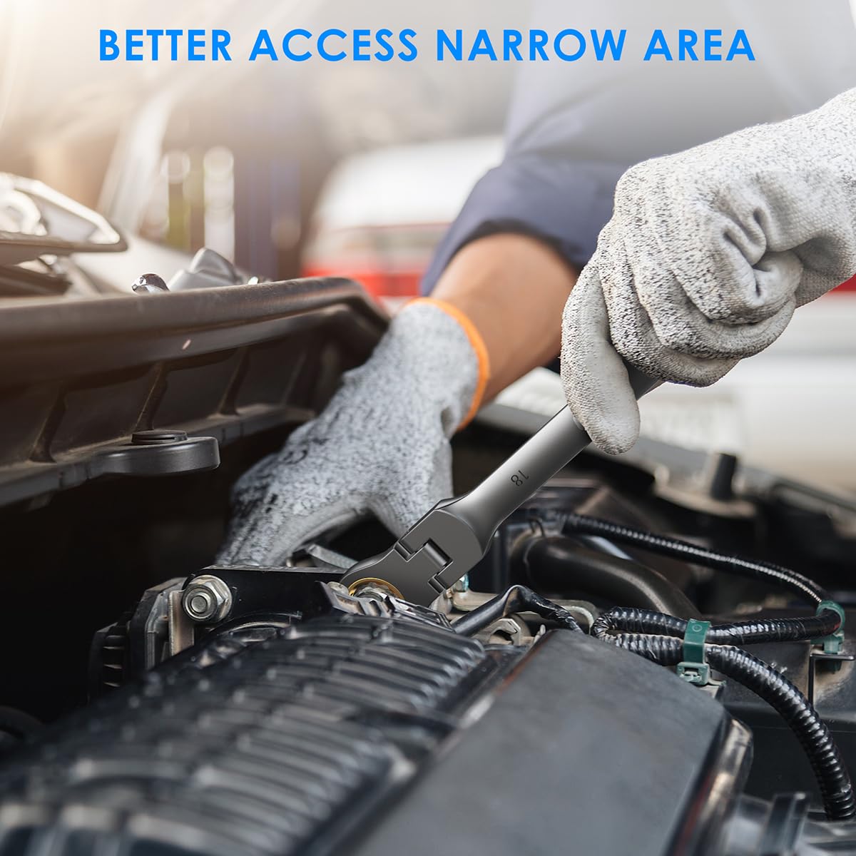 Die Kombination aus einem um 180 Grad schwenkbaren Gelenkkopf (Flex-Kopf) und einem präzisen 72-Zahn-Ratschenmechanismus ist entscheidend. Dieser benötigt nur einen minimalen Arbeitswinkel von 5 Grad, sodass Sie Schrauben und Muttern auch dort mühelos erreichen und bewegen können, wo für herkömmliche Schlüssel kein Platz ist.