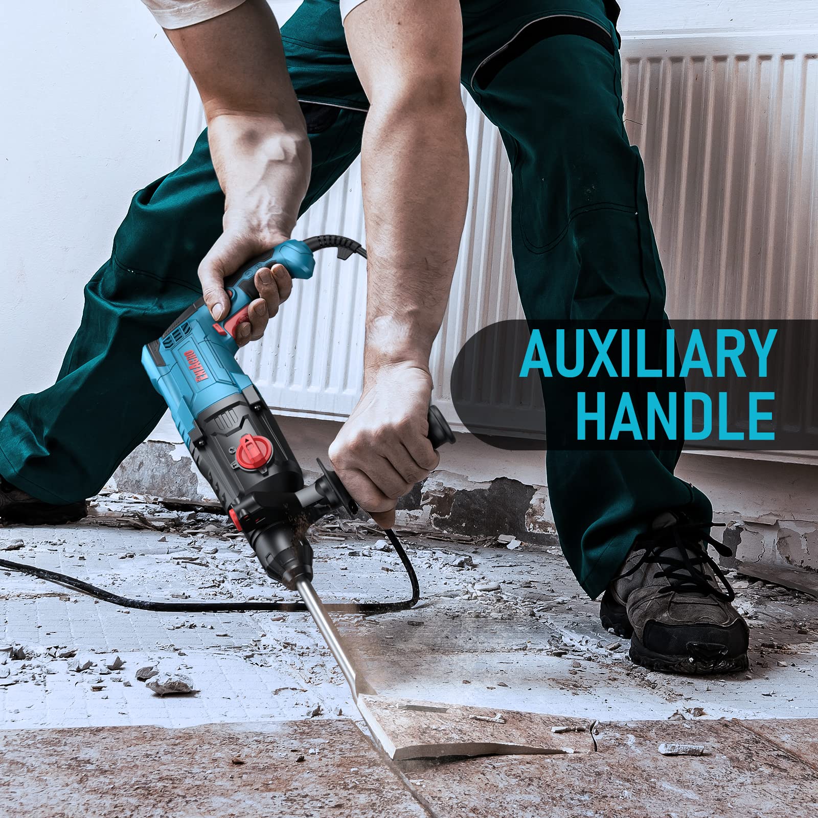 Dieser robuste Bohrhammer ist der ideale Partner für anspruchsvolle Bohr- und Meisselarbeiten. Er vereint kraftvolle Leistung mit durchdachten Funktionen und ist somit perfekt für Heimwerker sowie für den semiprofessionellen Einsatz geeignet.