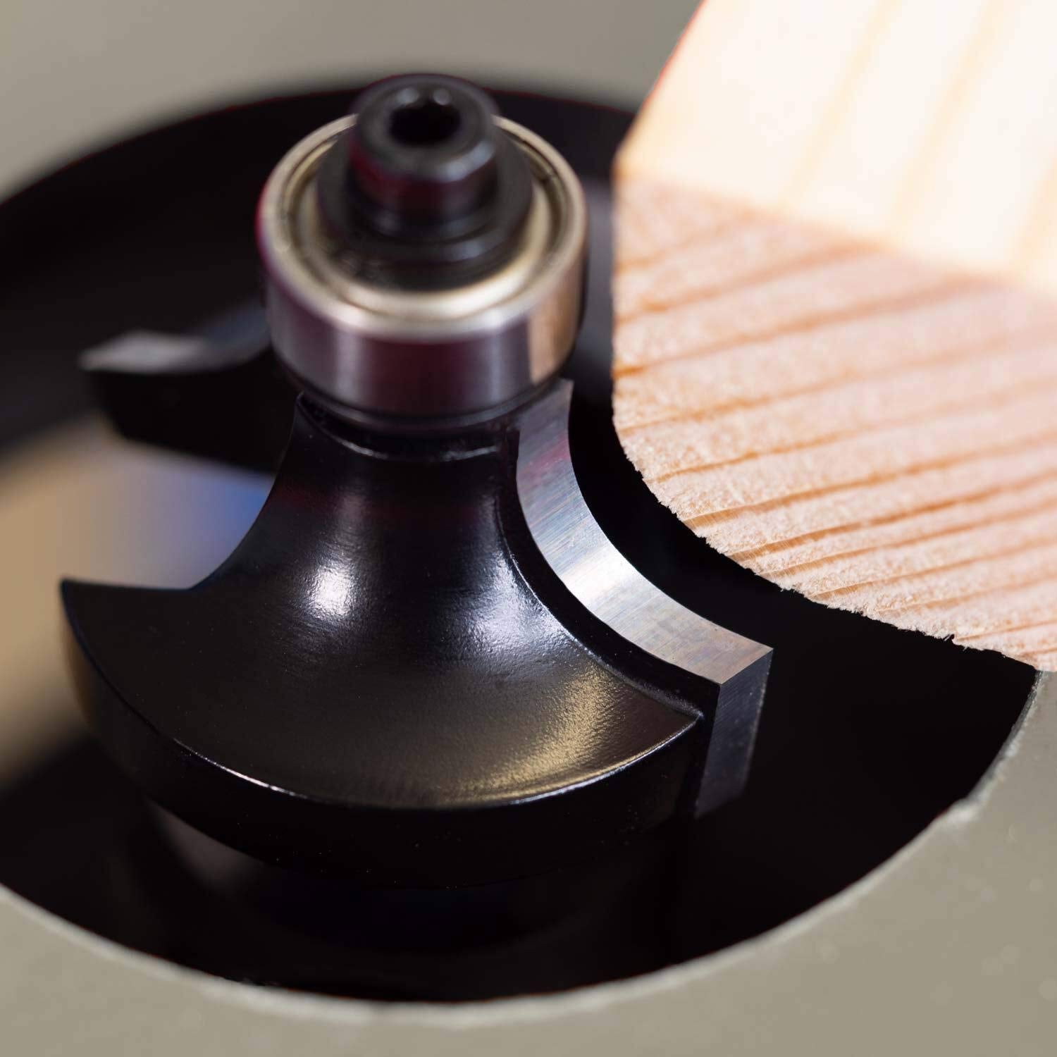 Die Kantenfräser (Abrund-, Fase- und Bündigfräser) sind mit hochwertigen Kugellagern ausgestattet. Diese ermöglichen eine präzise Führung direkt am Werkstück, ohne dass ein separater Anschlag nötig ist. Dies sorgt für einen gleichmässigen Abstand und führt zu glatten, sauberen Ergebnissen ohne Ausrisse an Möbeln oder Rahmen.