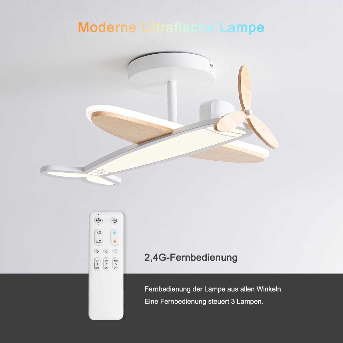 Epochglo Flugzeug LED Deckenleuchte Dimmbar für Kinderzimmer, Ø53cm