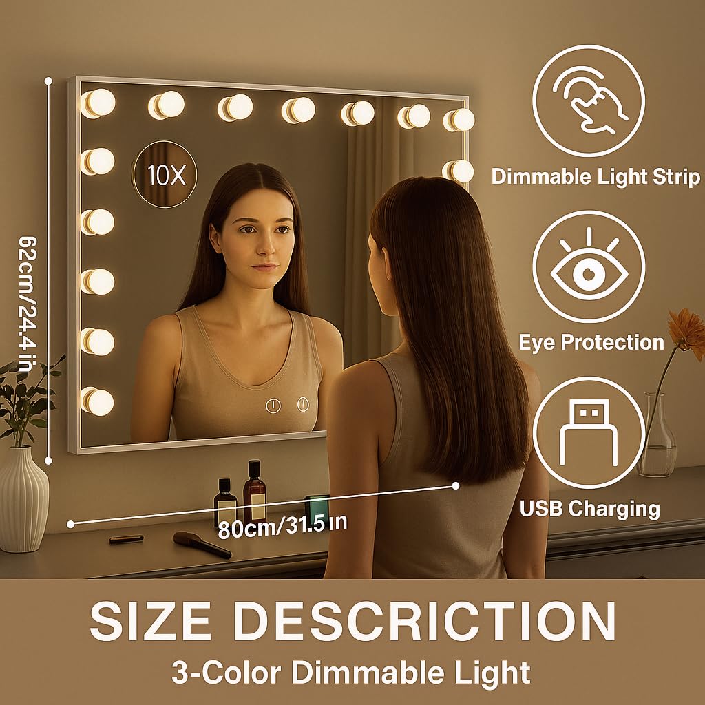 Ereousa Schminkspiegel Hollywood Touch Dimmbar LED - 80x62cm