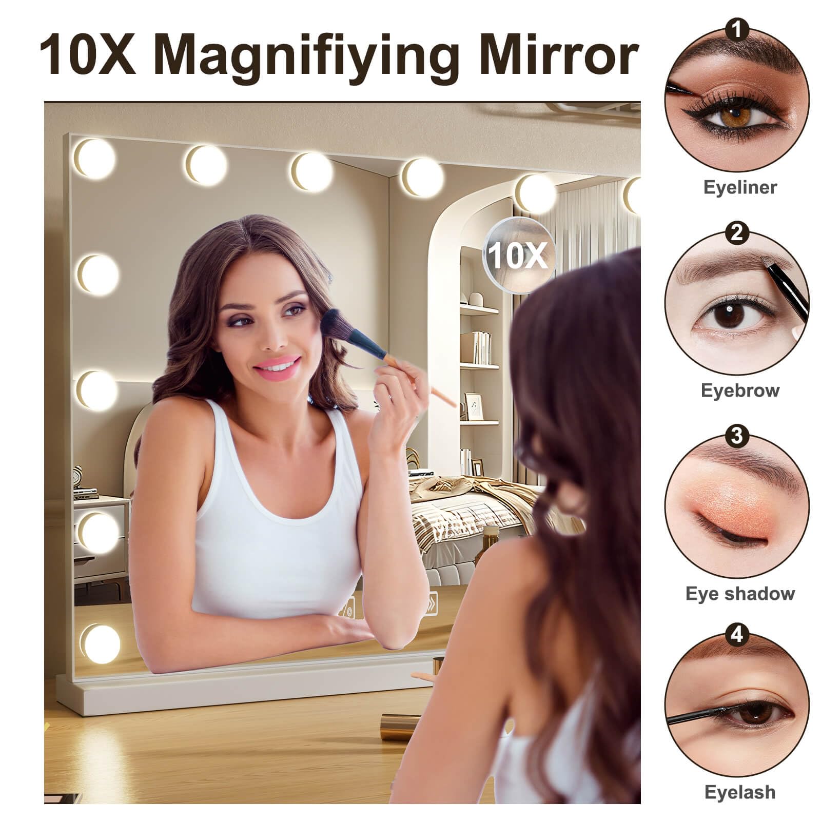 - Separater 10-fach Vergrösserungsspiegel: Ein kleiner, abnehmbarer Zoomspiegel mit Saugnapf ermöglicht hochpräzises Arbeiten bei Details wie dem Ziehen eines Eyeliners oder dem Zupfen der Augenbrauen.