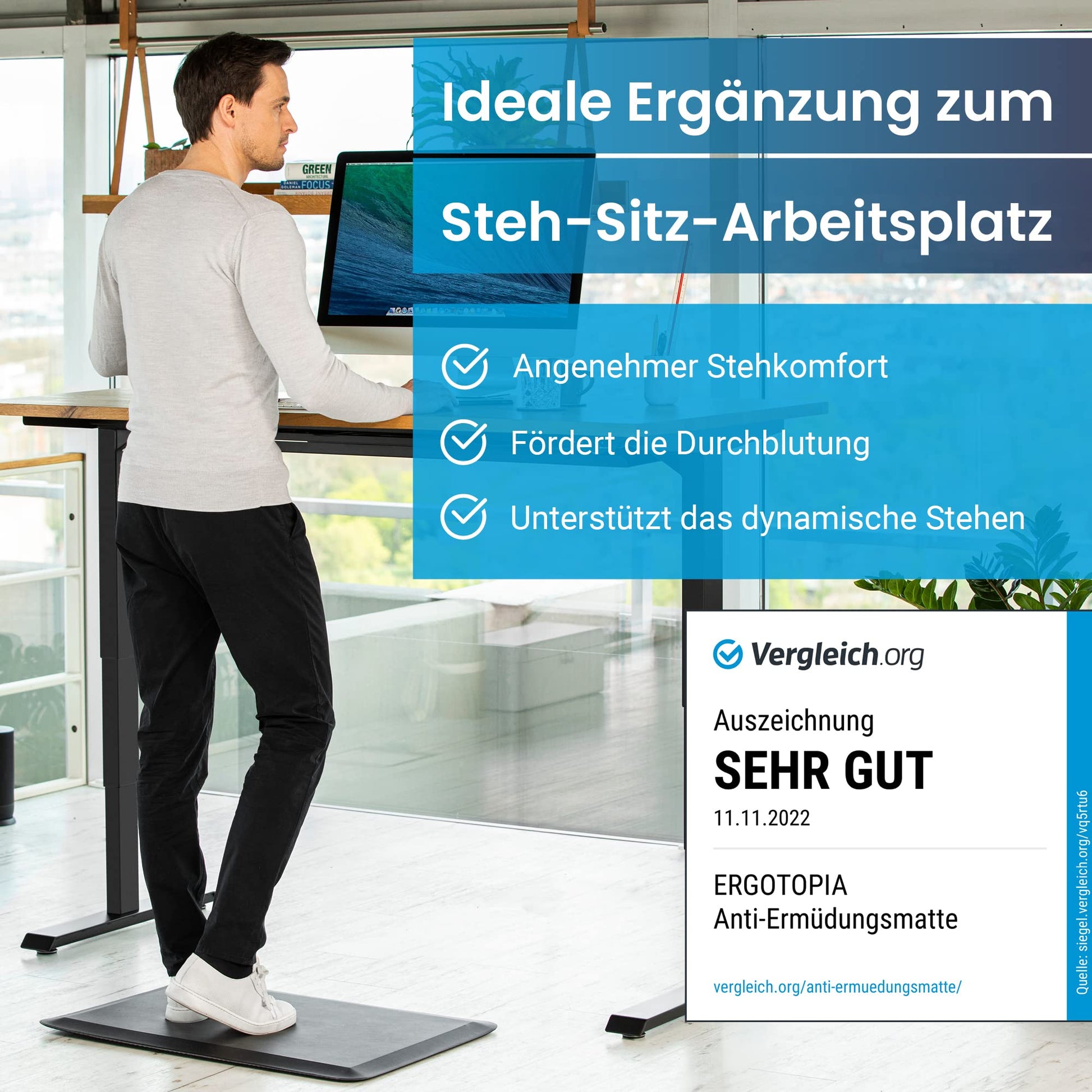 Investieren Sie in Ihre Gesundheit und steigern Sie Ihr Wohlbefinden am Arbeitsplatz mit dieser hochwertigen ergonomischen Stehmatte.