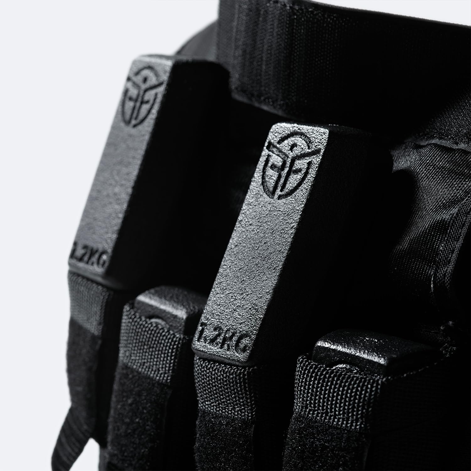 - 20 kg Weste: 0,9 kg Leergewicht, ausgestattet mit 16 Gewichten à 1,2 kg in 16 Taschen.