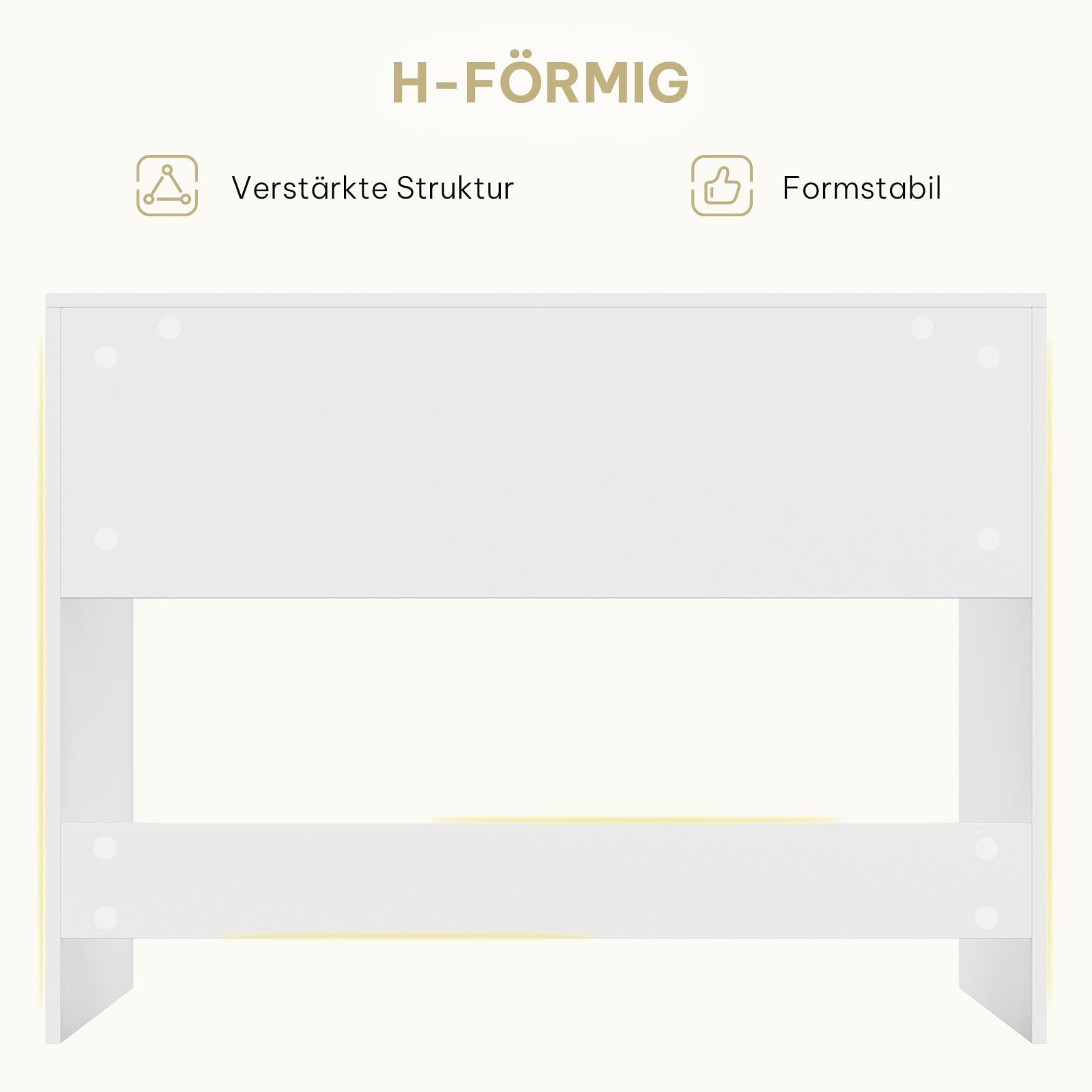 Die clevere Konstruktion mit der H-förmigen Querstrebe garantiert eine aussergewöhnliche Stabilität. So können Sie problemlos Computer, Monitore, Bücher und weitere Arbeitsutensilien sicher darauf platzieren, ohne sich Sorgen um die Belastbarkeit machen zu müssen.
