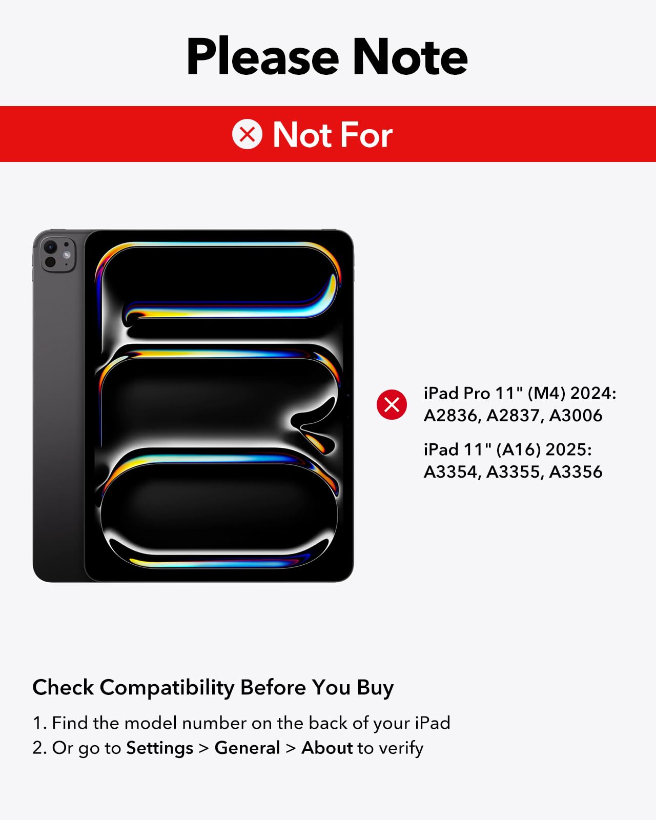 Diese Hülle passt exklusiv für das iPad Air 11 Zoll (M3/M2), iPad Air der 6., 5. und 4. Generation sowie das iPad Pro 11 Zoll (Modelle von 2018 bis 2022). Um sicherzugehen, vergleichen Sie bitte die Modellnummer auf der Rückseite Ihres iPads mit der Liste in der Produktbeschreibung.