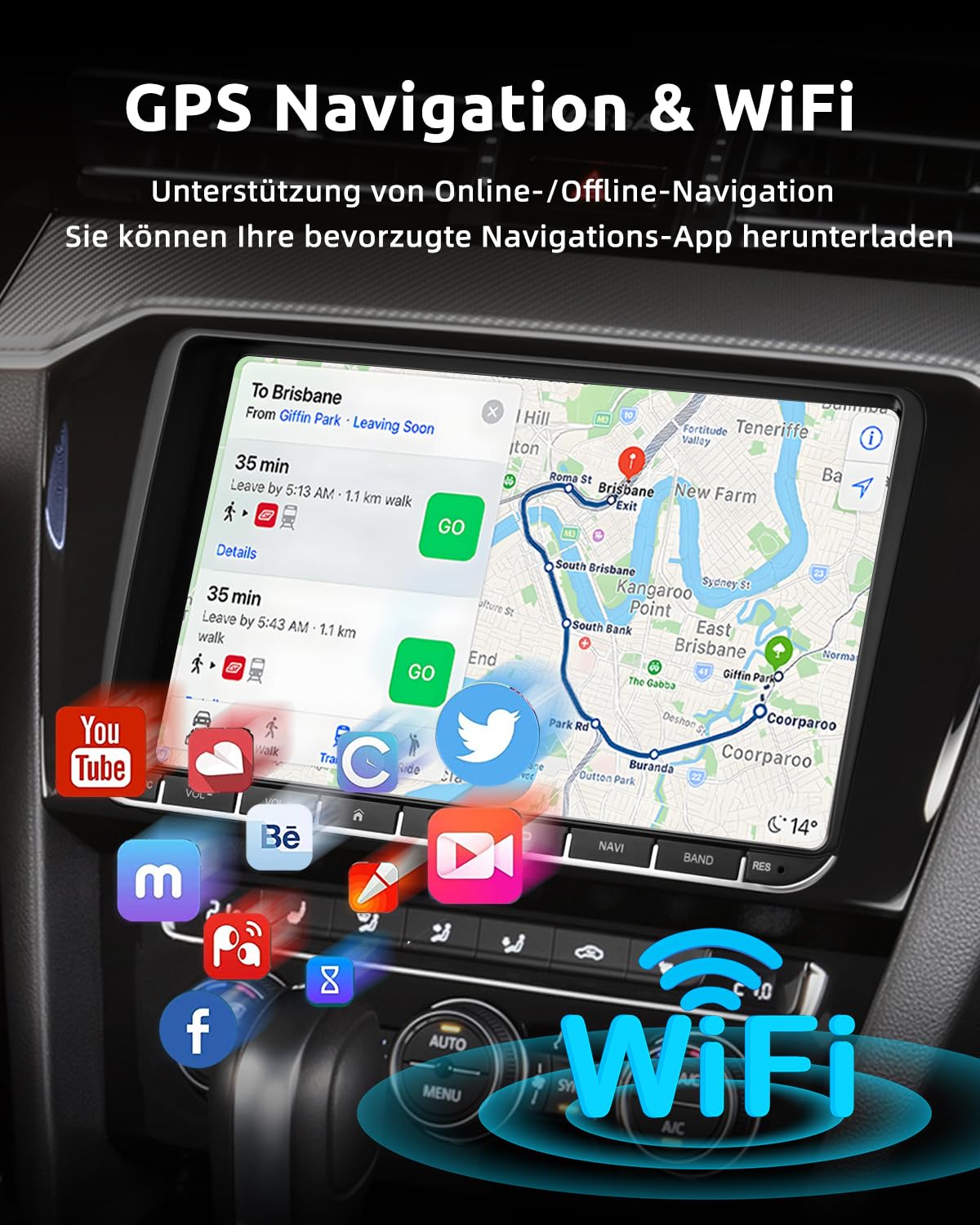 Neben CarPlay und Android Auto können Sie das Radio per WLAN mit dem Internet verbinden, um Apps wie YouTube oder Spotify direkt herunterzuladen und zu nutzen. Es verfügt zudem über einen hochwertigen FM-Radioempfänger mit RDS, Bluetooth 4.1 für Musik-Streaming und einen 32-Band-Equalizer für ein optimales Klangerlebnis.