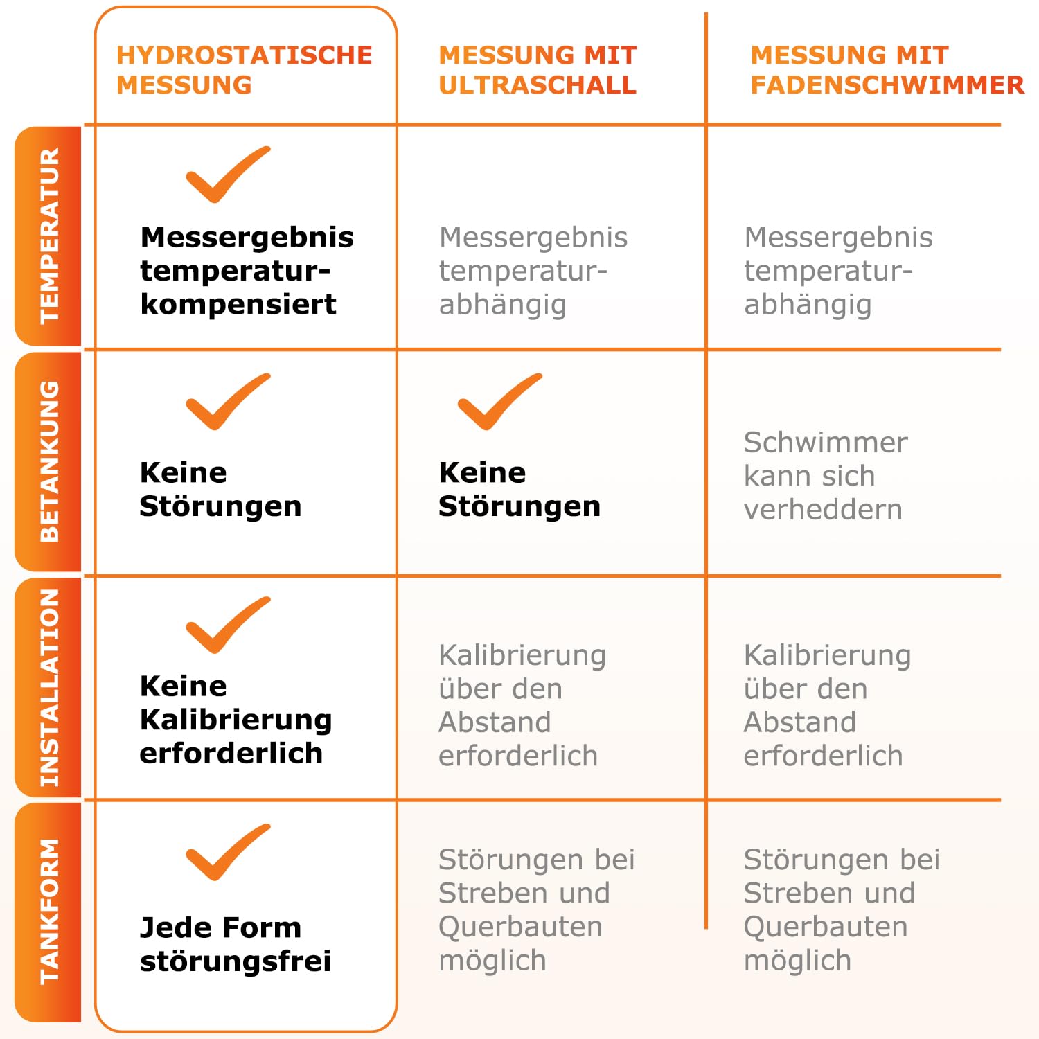 - Messverfahren: Nutzt das hydrostatische Druckmessverfahren für eine ausserordentlich genaue und zuverlässige Bestimmung des Tankinhalts.