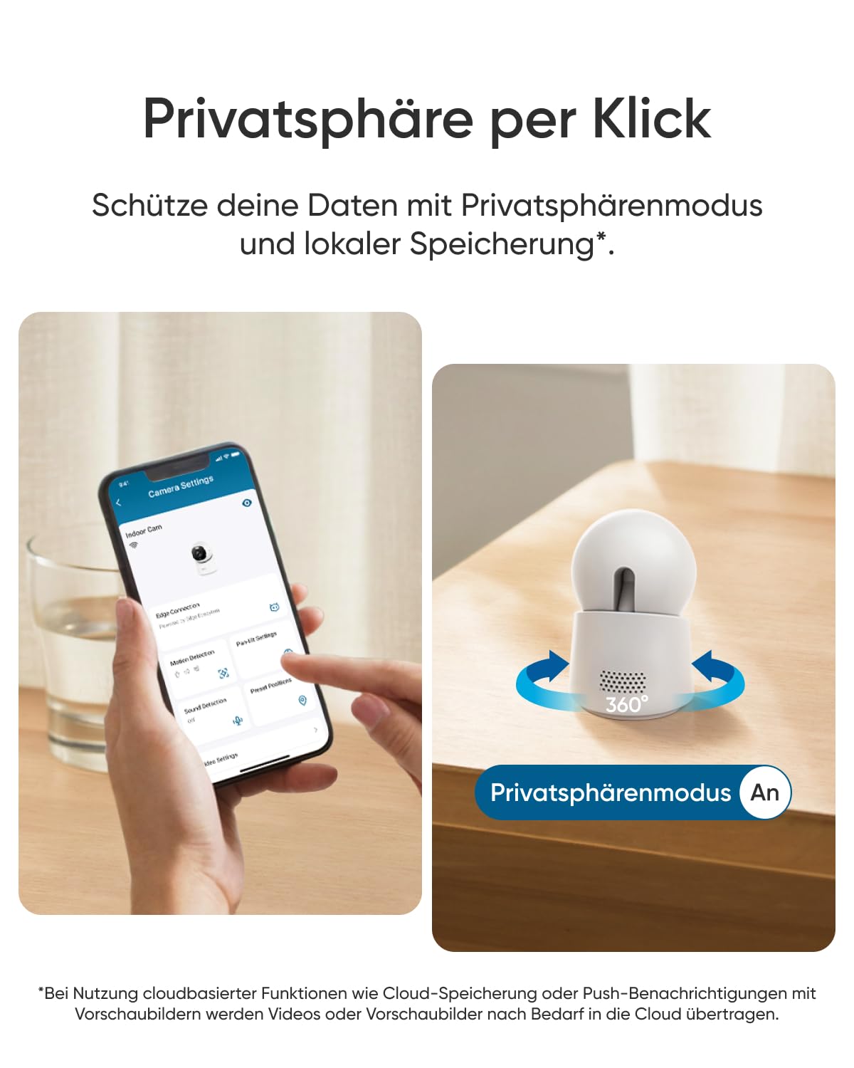 Mit diesem Kamera-Set erhalten Sie nicht nur gestochen scharfe Bilder, sondern auch ein echtes Gefühl der Sicherheit. Die fortschrittliche KI-Technologie sorgt dafür, dass Sie nur bei relevanten Ereignissen benachrichtigt werden. Verfolgen Sie spielende Haustiere oder überprüfen Sie, ob bei Ihren Kindern alles in Ordnung ist – die automatische Tracking-Funktion hält das Geschehen stets im Fokus. Dank der 360°-Abdeckung und der intuitiven App-Steuerung per Fingertipp entgeht Ihnen nichts mehr.