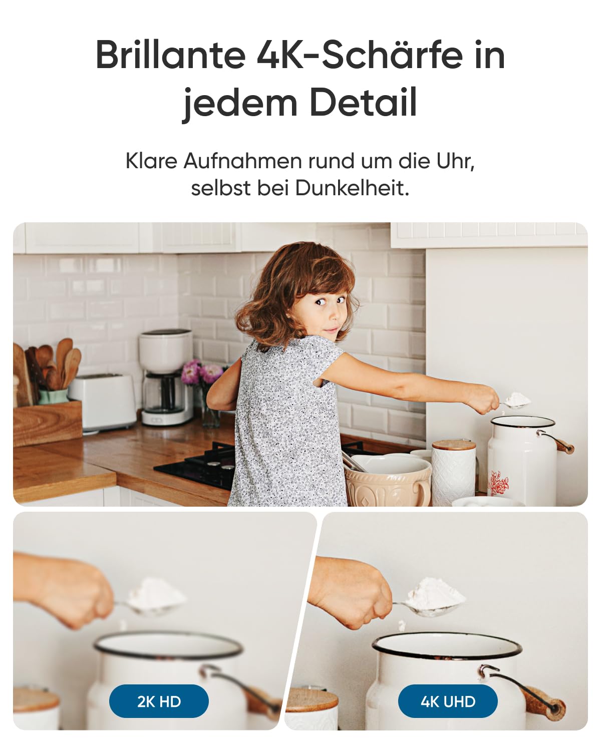 - Kristallklare 4K UHD-Auflösung: Erfasst jedes Detail bei Tag und Nacht, unterstützt durch eine klare Farbnachtsicht-Funktion.