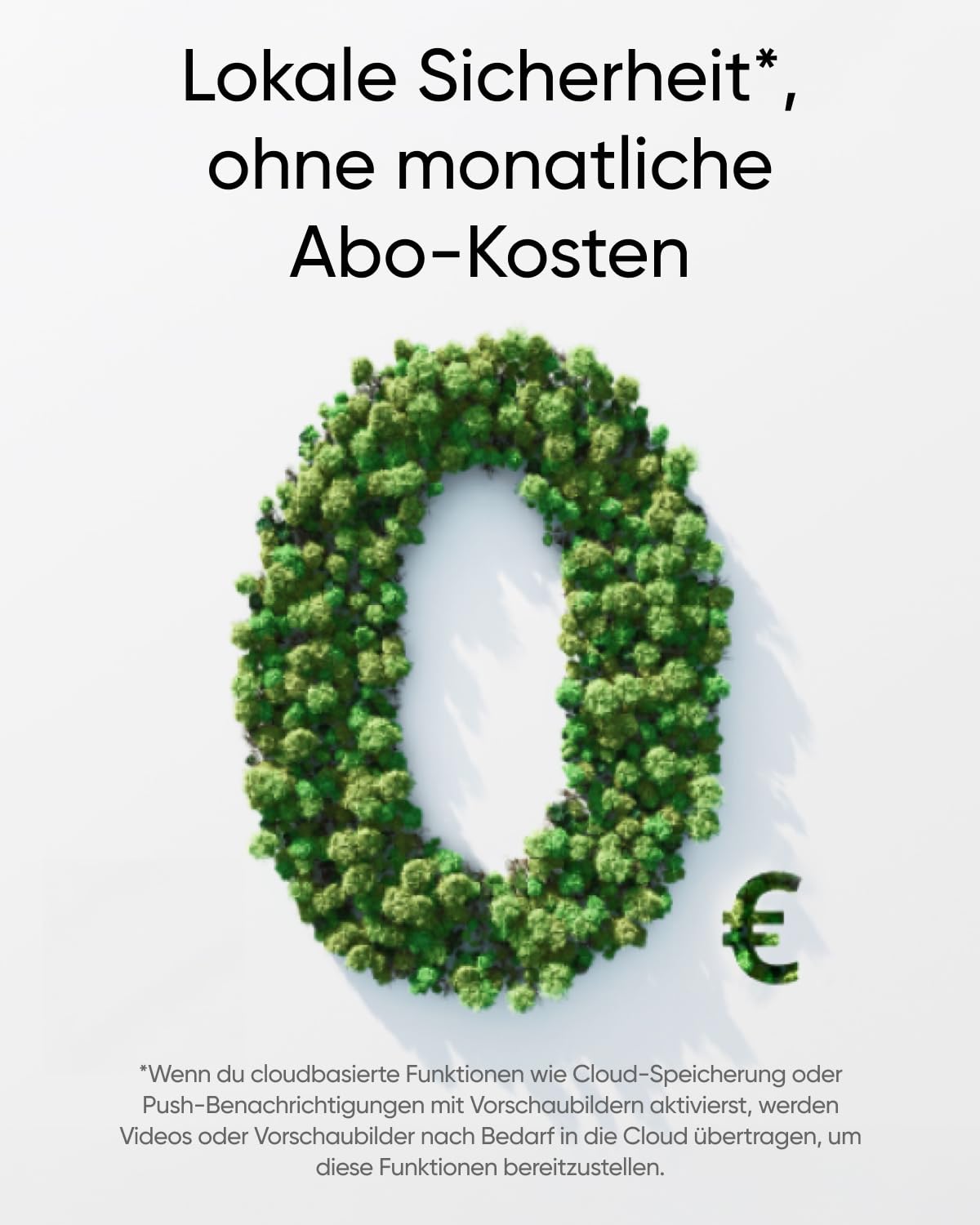 Alle Aufnahmen werden gebührenfrei direkt auf dem internen Speicher der Kamera gesichert. Sie benötigen keine zusätzliche SD-Karte oder ein kostenpflichtiges Cloud-Abonnement und behalten so die volle Kontrolle über Ihre Daten und Kosten.