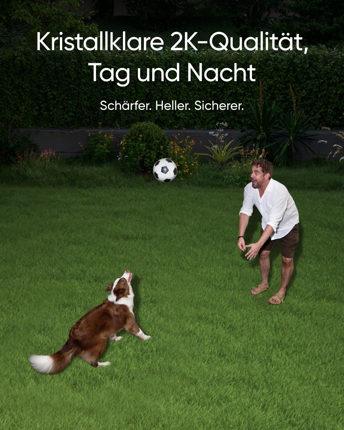 - Gestochen scharfe 2K-Auflösung: Erleben Sie jedes Detail in hochauflösender 2K-Qualität, egal ob bei Live-Übertragungen oder Aufzeichnungen. Die 2'000 Lumen starken, bewegungsaktivierten Flutlichter ermöglichen auch bei Dunkelheit eine brillante Sicht in Farbe.