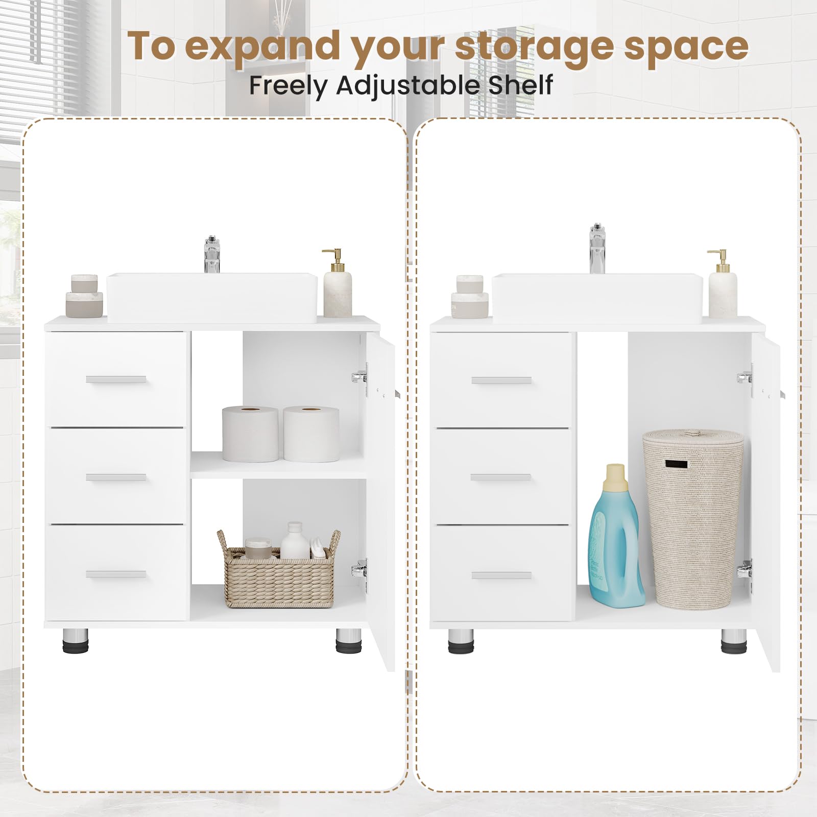 EUGAD Waschbeckenunterschrank Badmöbel - Weiss, 3 Schubladen, 60cm