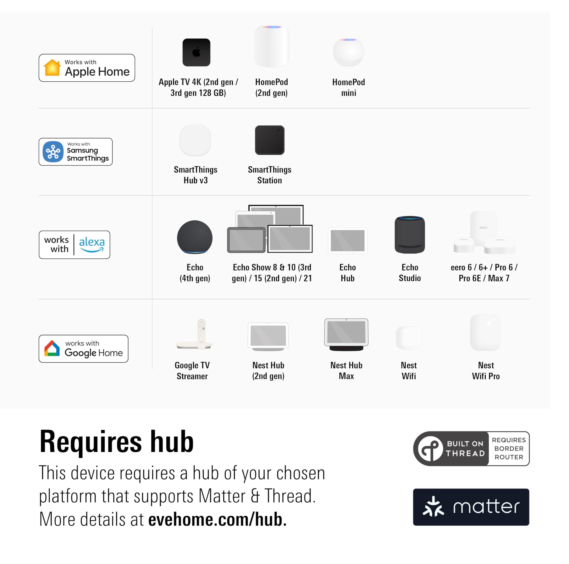 - Google Home: Nest Hub (2. Gen.), Nest Hub Max, Nest Wifi Pro