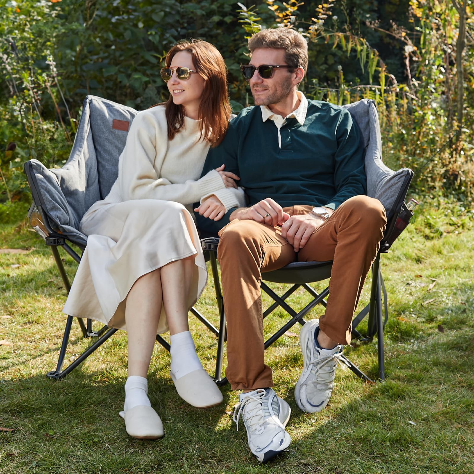 Geniessen Sie entspannte Stunden zu zweit mit diesem komfortablen und grosszügigen Faltsofa. Es kombiniert die Bequemlichkeit eines Sofas mit der Mobilität und Flexibilität eines Campingstuhls, perfekt für gemeinsame Momente im Freien oder als flexible Sitzlösung zu Hause.