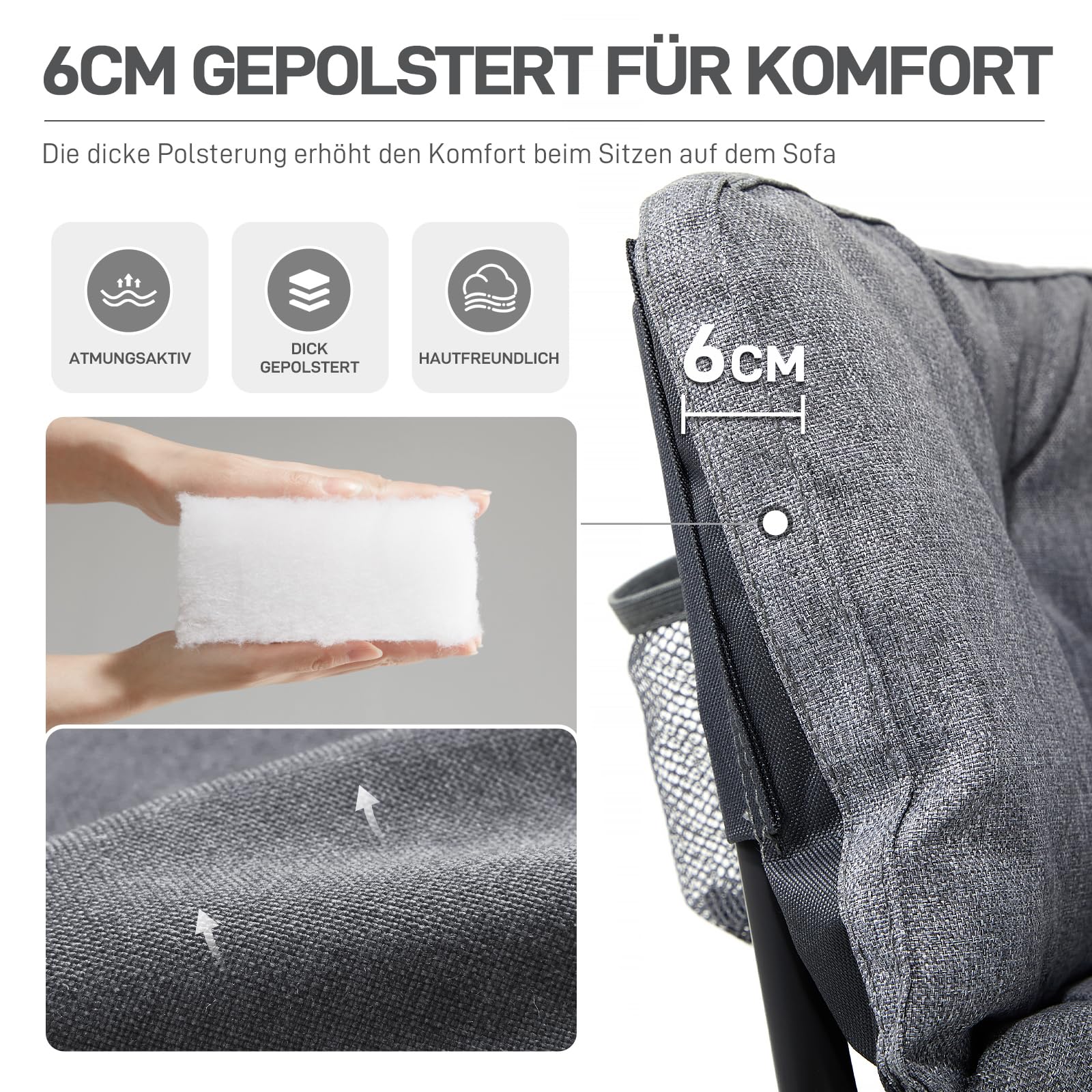 Es ist äusserst vielseitig und perfekt für Campingausflüge, den Garten, den Balkon, Festivals oder als flexible und gemütliche Sitzlösung für Gäste zu Hause. Es kombiniert den Komfort eines Sofas mit der Mobilität eines Campingstuhls.