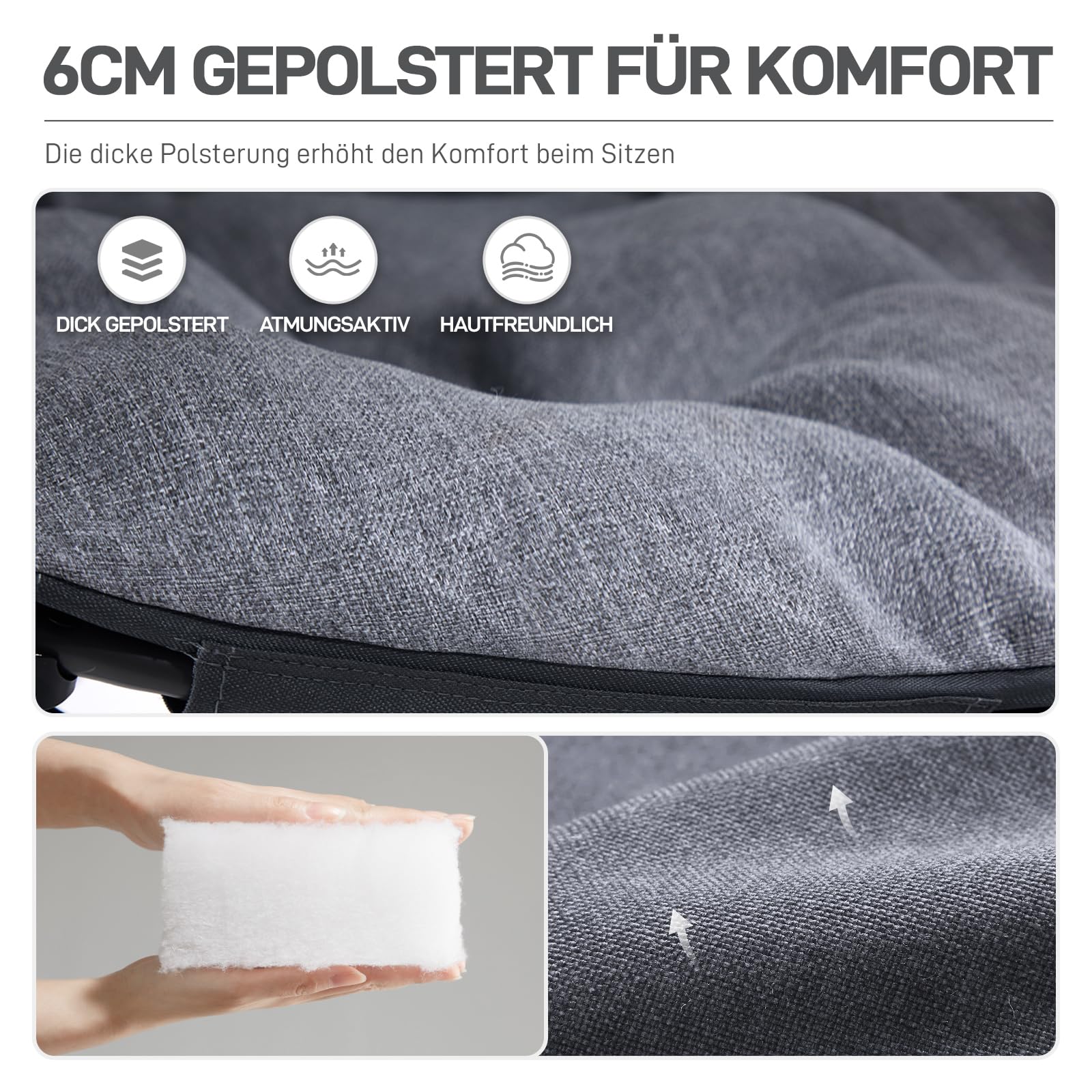 Dieser übergrosse Faltstuhl ist Ihr perfekter Begleiter für pure Entspannung. Dank der dicken Polsterung und des ergonomischen Designs sitzen Sie auch über längere Zeiträume äusserst bequem. Die strapazierfähigen Materialien und die solide Verarbeitung garantieren eine lange Lebensdauer, sodass Sie den Stuhl das ganze Jahr über im Garten, auf dem Balkon, beim Camping oder Fischen nutzen können. Er eignet sich ebenso hervorragend als flexible und bequeme Sitzgelegenheit für Gäste.
