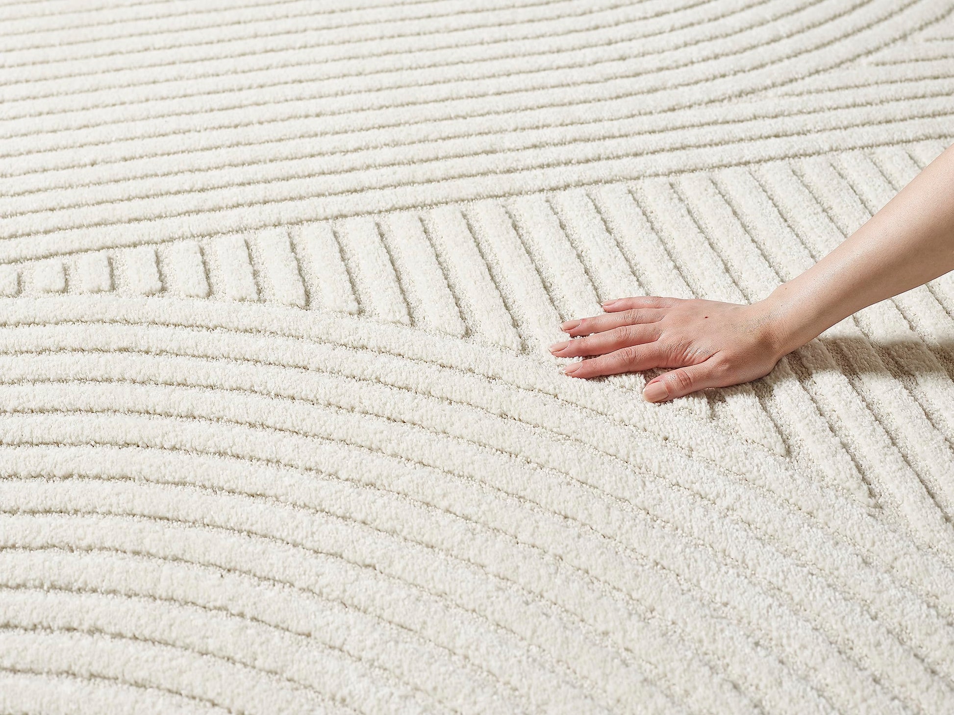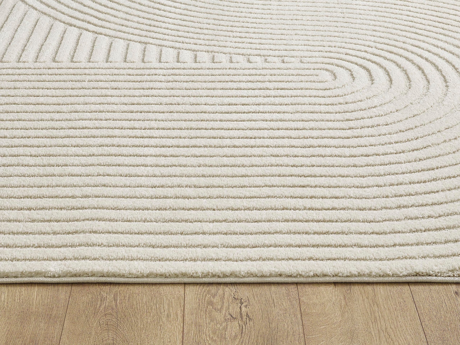 - Dynamische 3D-Optik: Eine raffinierte Hoch-Tief-Struktur erzeugt ein faszinierendes Spiel aus Licht und Schatten und verleiht dem Teppich eine lebendige, plastische Wirkung.