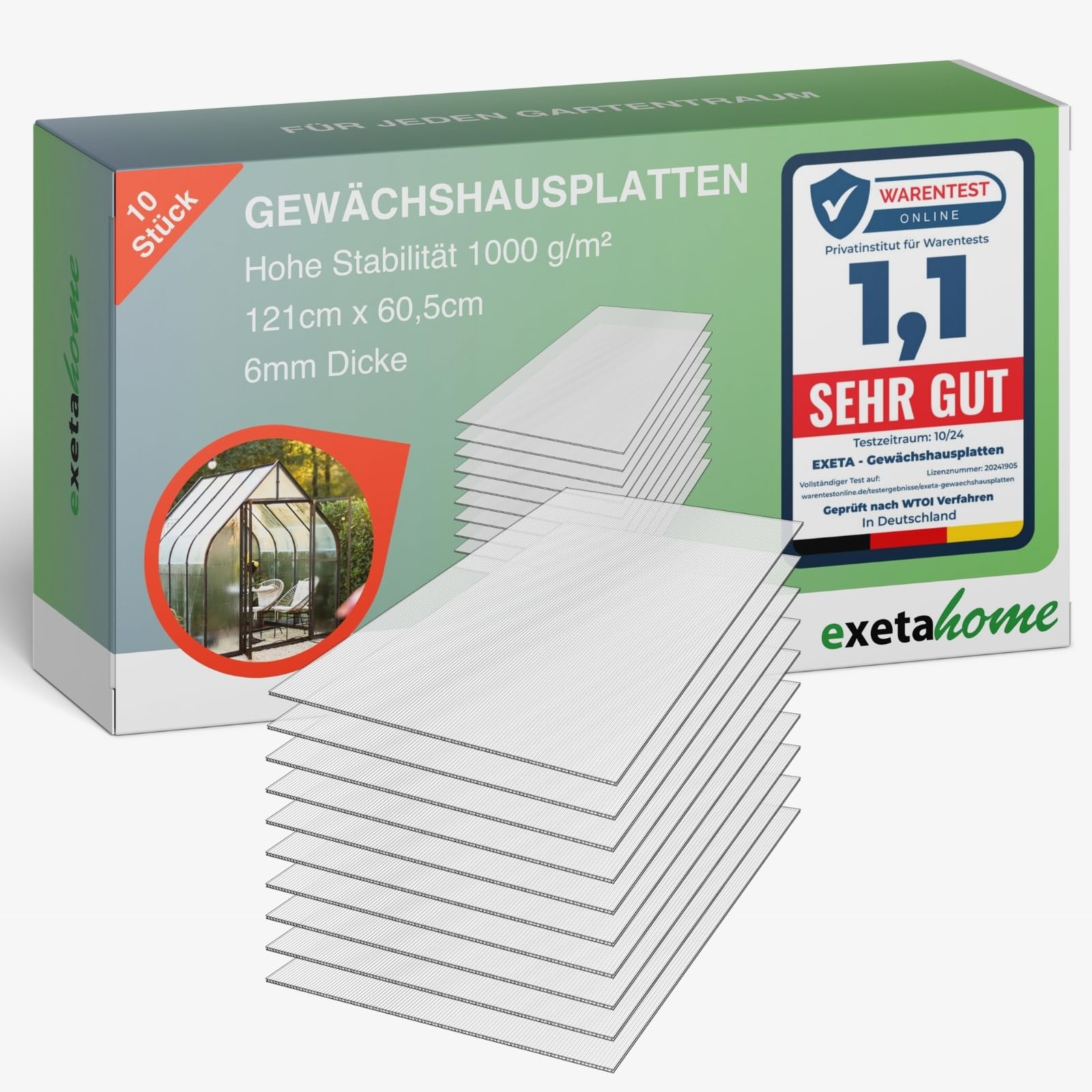 Exeta Hohlkammerplatten für Gewächshaus 10 Stk 6mm Transparent
