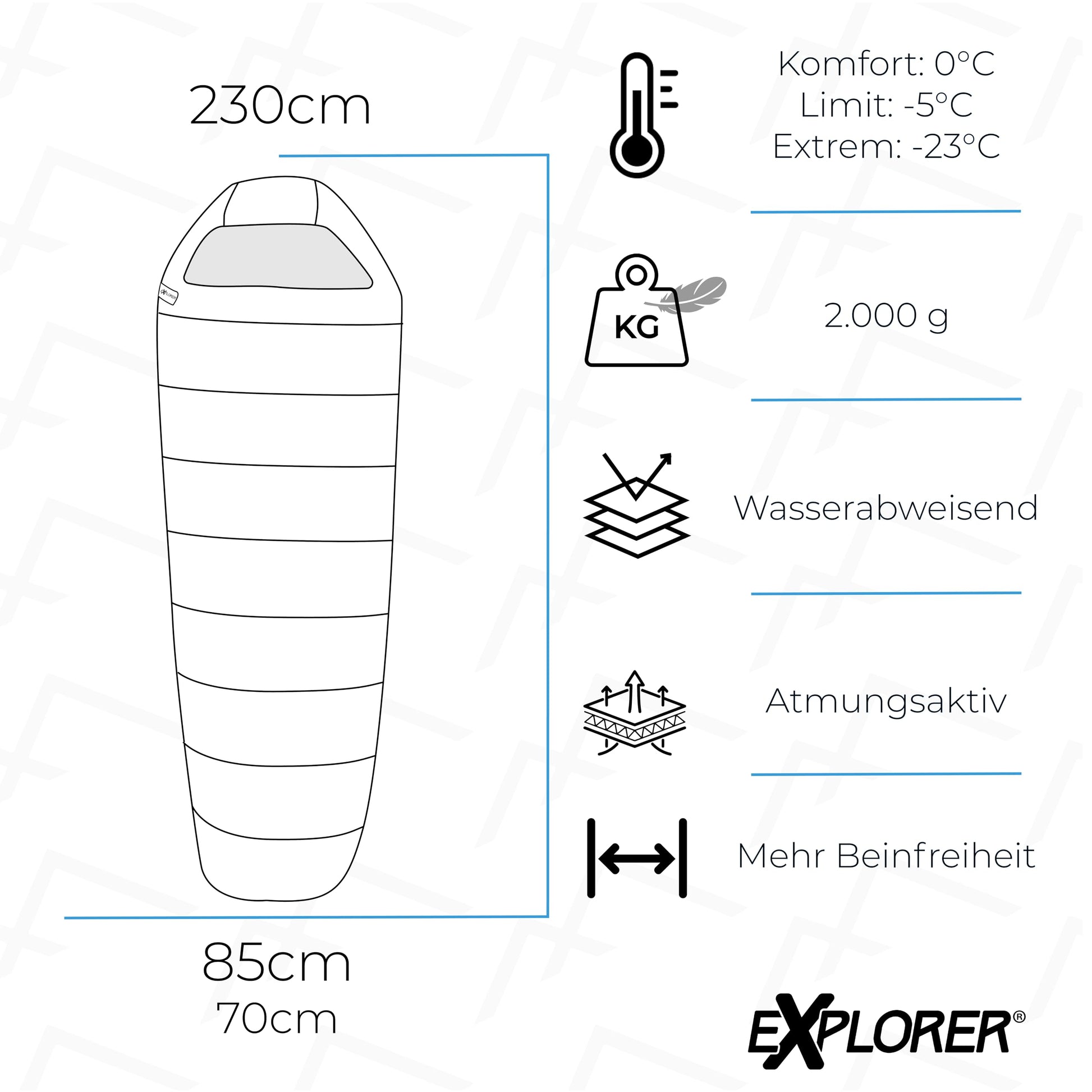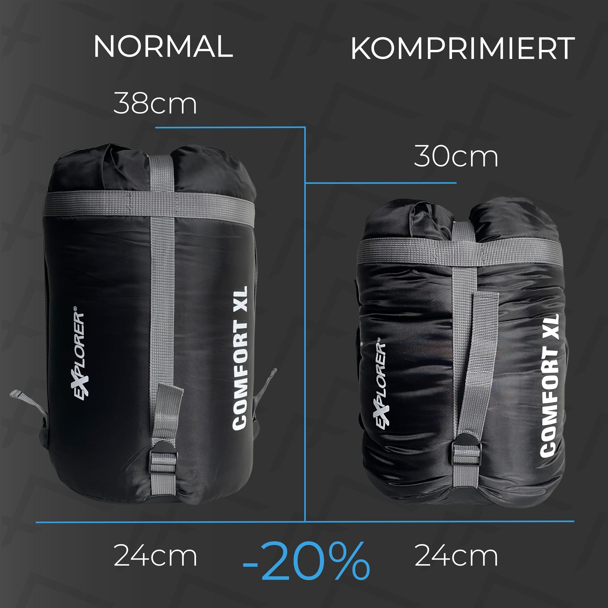 EXPLORER® Comfort XL Mumienschlafsack Winter -23°C Schwarz