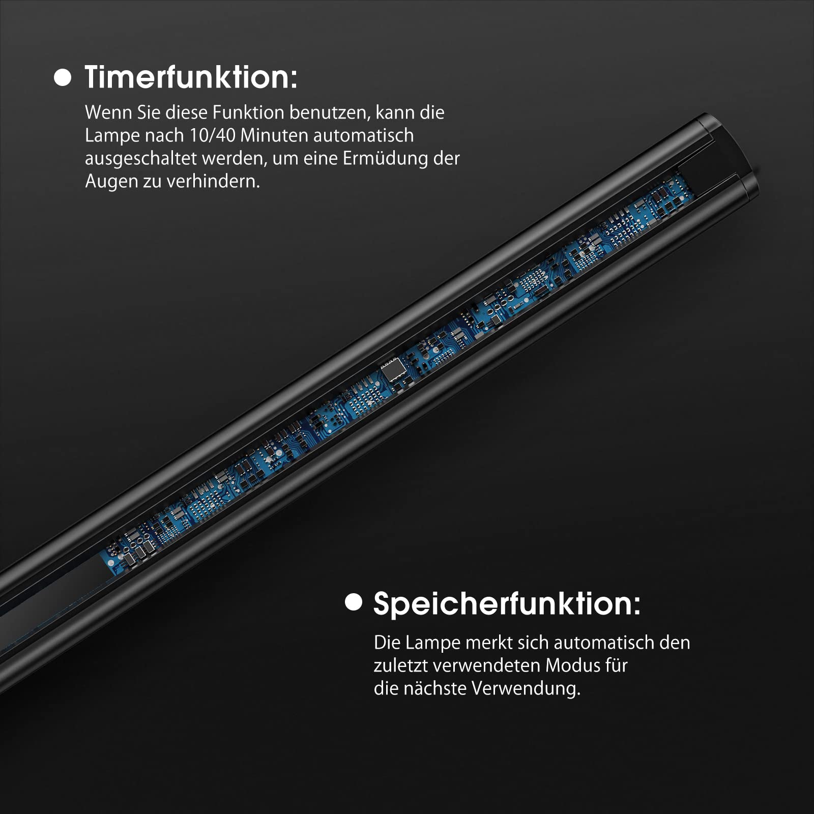 Erleben Sie maximalen Komfort und Kontrolle bei Ihrer Arbeit. Ändern Sie die Lichteinstellungen bequem mit der Fernbedienung oder schalten Sie die Lampe mit einer einfachen Handbewegung ein und aus, ohne Ihren Arbeitsfluss zu unterbrechen. Das spezielle asymmetrische Design lenkt das Licht gezielt auf Ihre Arbeitsfläche und schützt Ihre Augen vor störenden Bildschirmreflexionen und Ermüdung. Für gezielte Arbeitsphasen steht zudem eine praktische Timer-Funktion (10/40 Minuten) zur Verfügung.