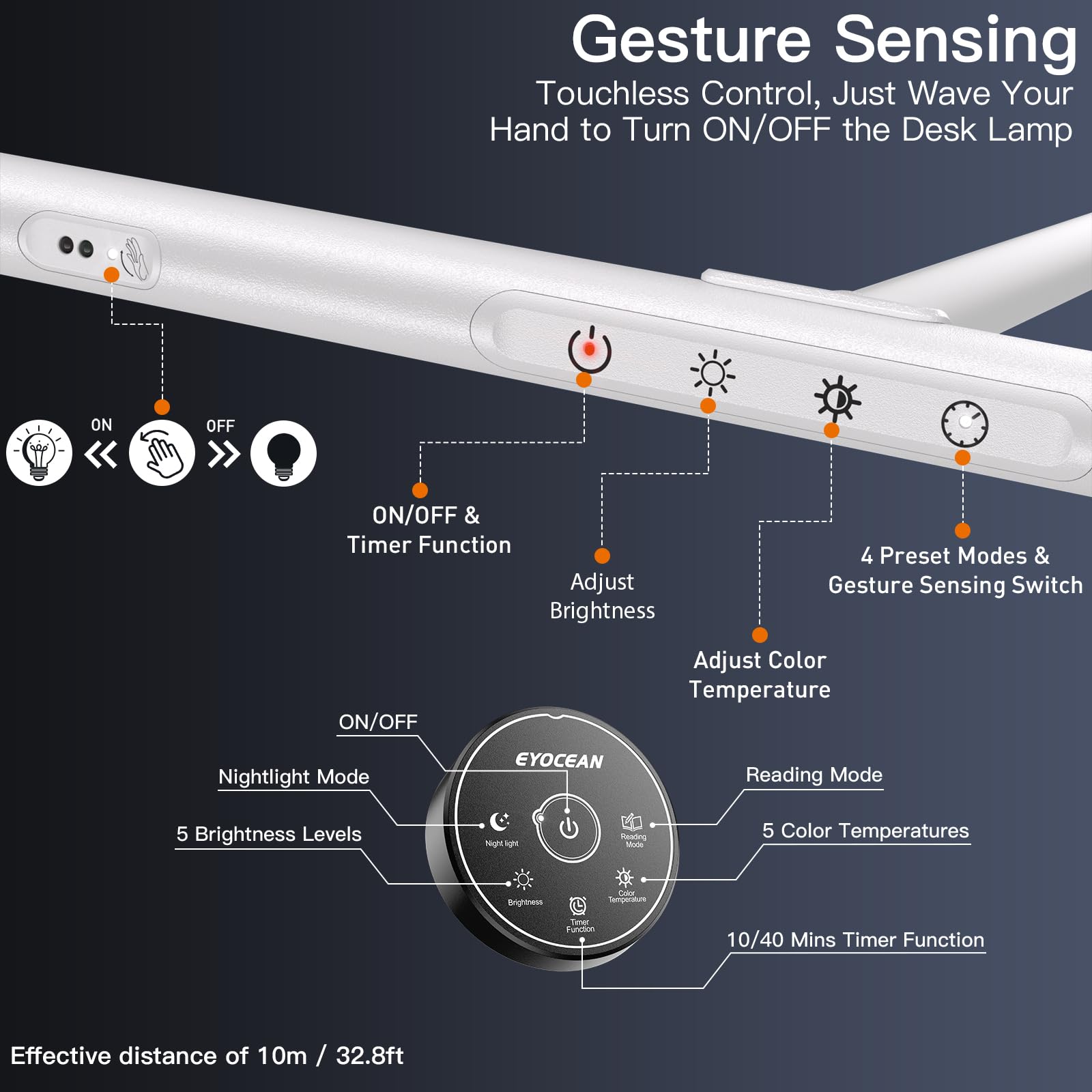 EYOCEAN LED Monitorlampe 80cm – Klemmbar, Gestensteuerung Weiss