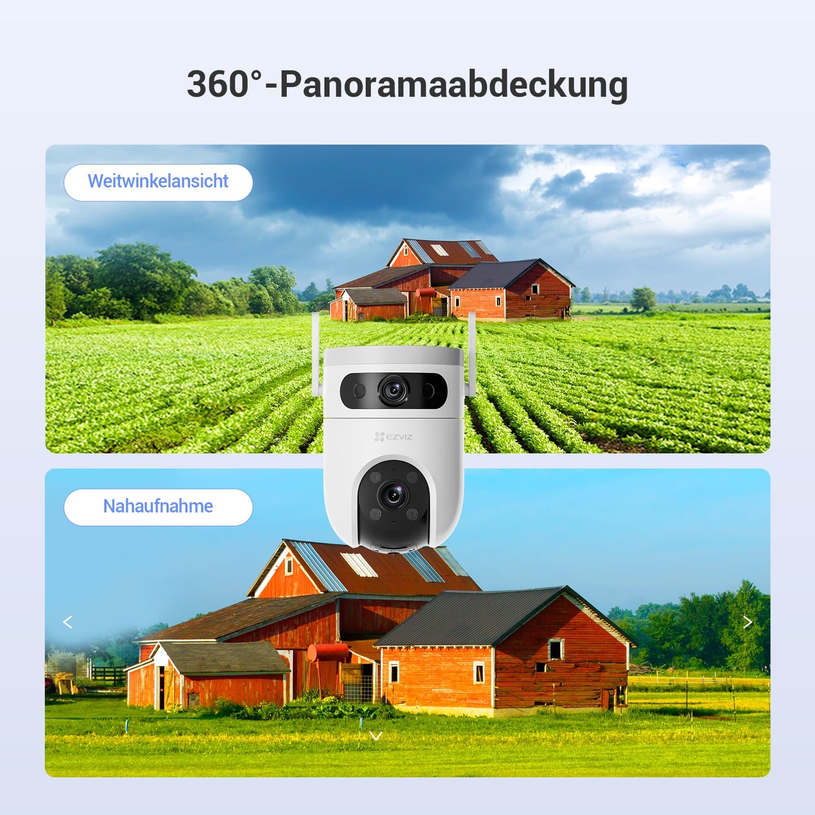 Erleben Sie eine umfassende Überwachung Ihres Aussenbereichs mit dieser intelligenten WLAN-Kamera, die dank eines innovativen Dual-Objektiv-Systems keine Wünsche offenlässt.