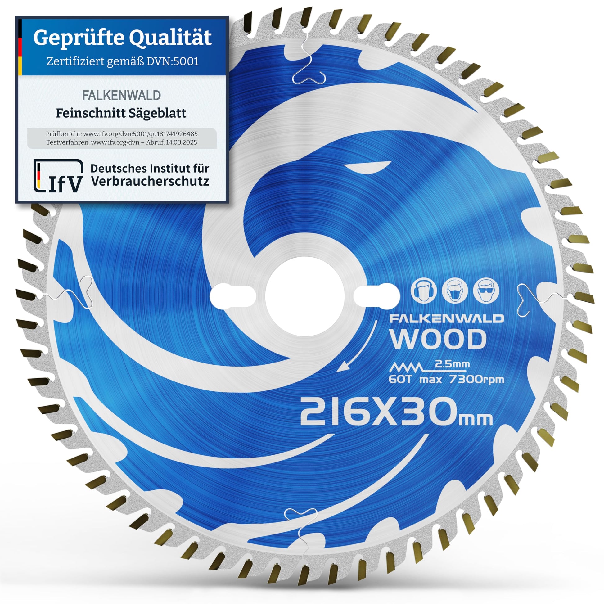 FALKENWALD Kappsägeblatt für Holz - HM 216x30 mm, 60 Zähne