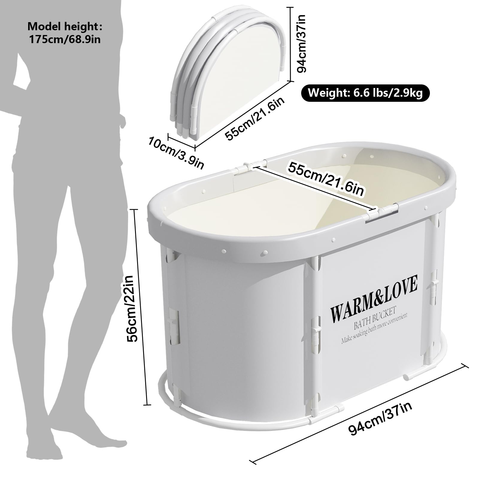 Tragbare Faltbadewanne Eisbad Heissbad – Grau weiss, Oval-Medium