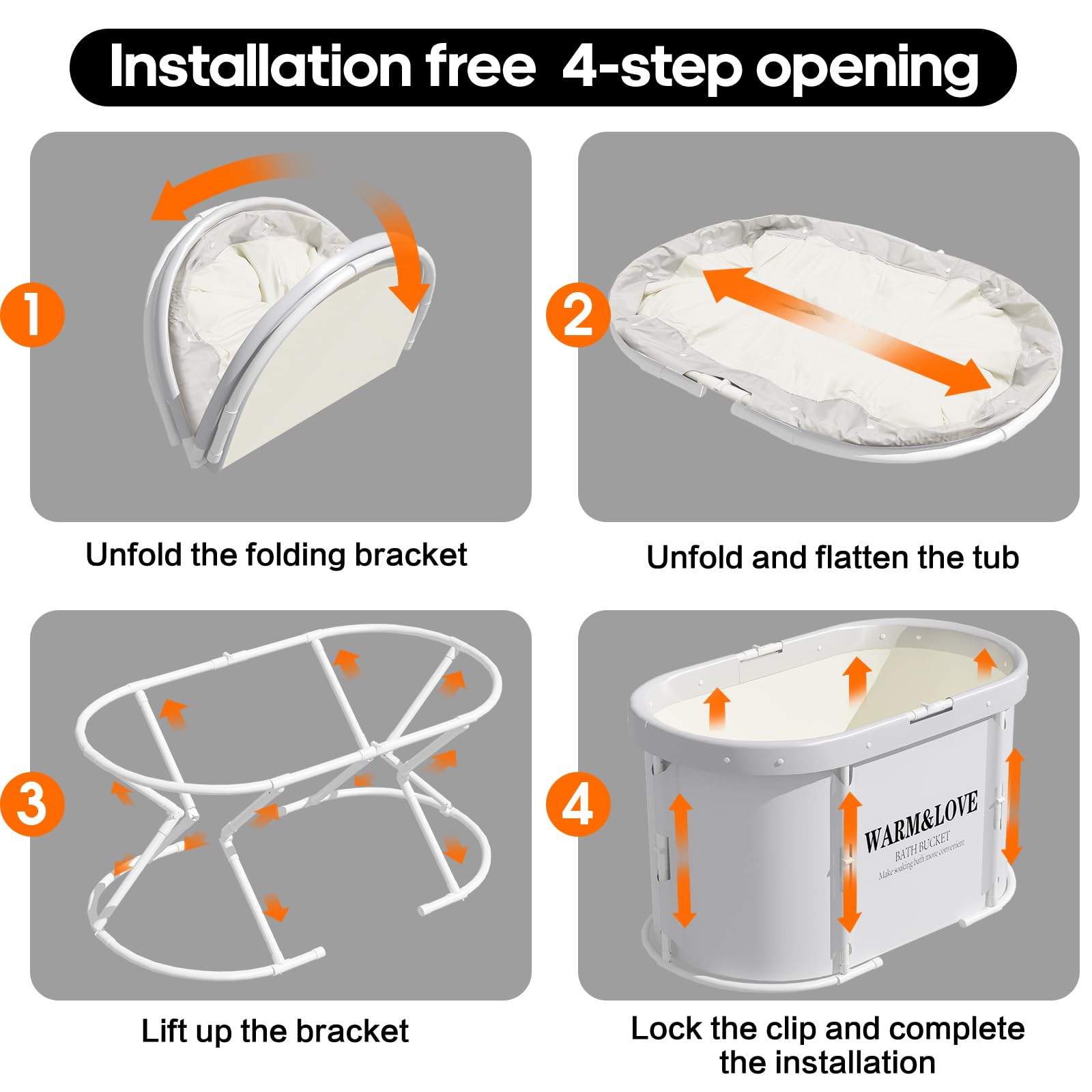 Die Wanne ist dank eines patentierten Designs mit Federnieten in Sekundenschnelle einsatzbereit, ganz ohne Aufpumpen. Mit nur ca. 3.8 kg Gewicht und einem sehr kleinen Faltmass ist sie extrem leicht zu transportieren und platzsparend zu verstauen, ideal für Reisen oder kleine Wohnungen.