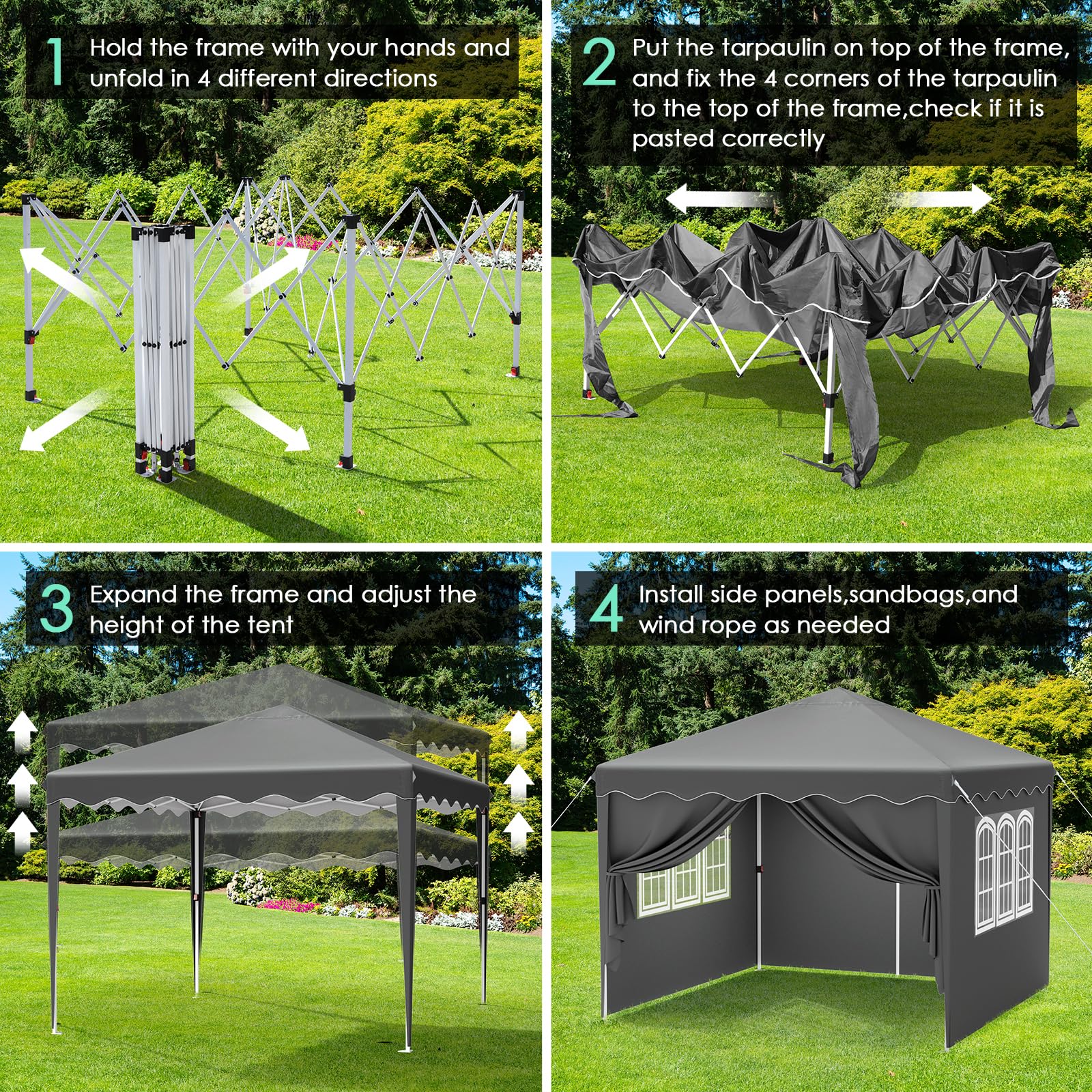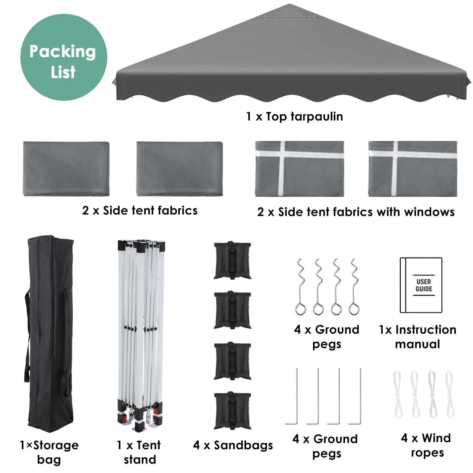 OutdoorPro Faltpavillon 3x3m – UV50+ Grau mit Seitenteilen