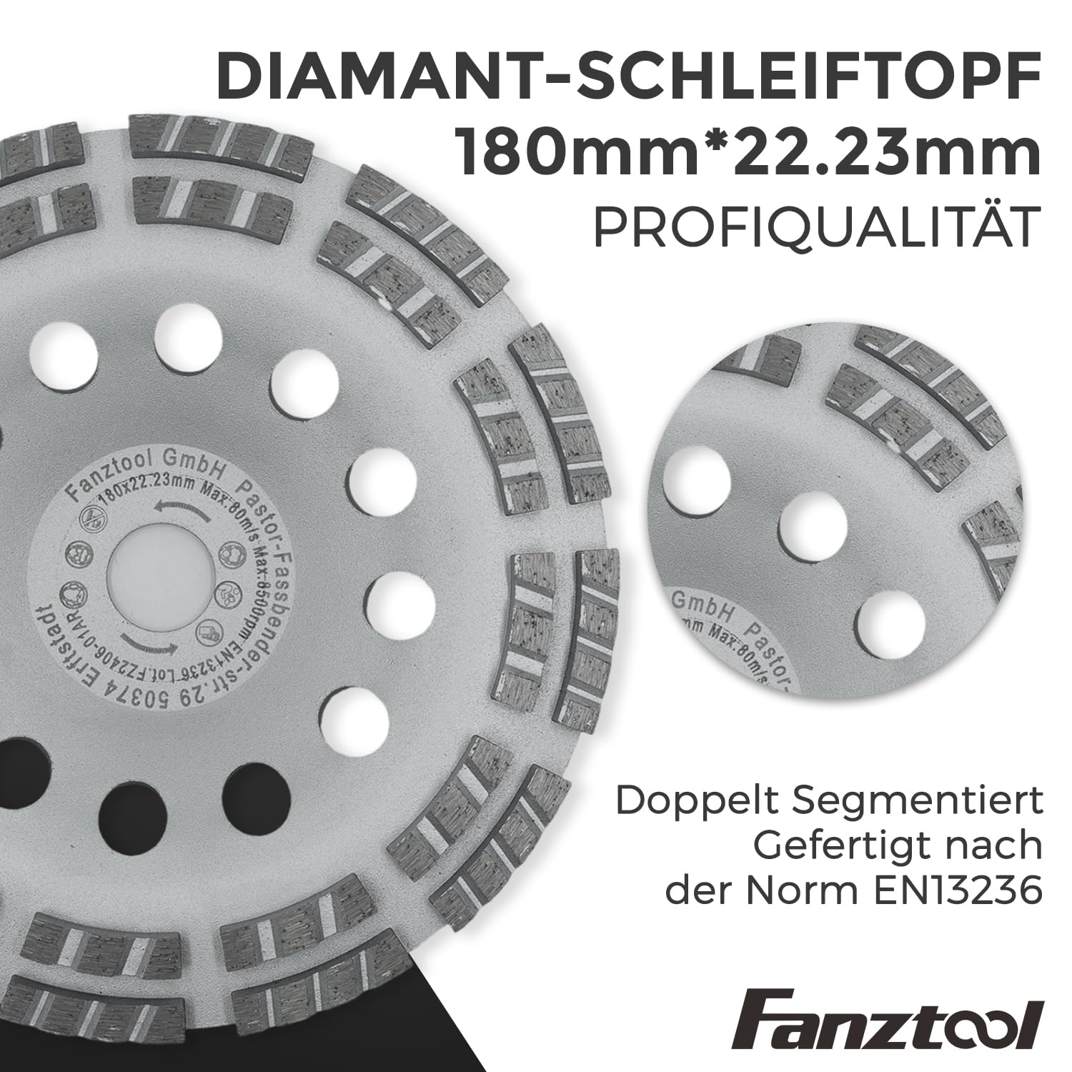 FANZTOOL Diamantschleiftopf 180mm (2er-Set) + Absaughaube Winkelschleifer