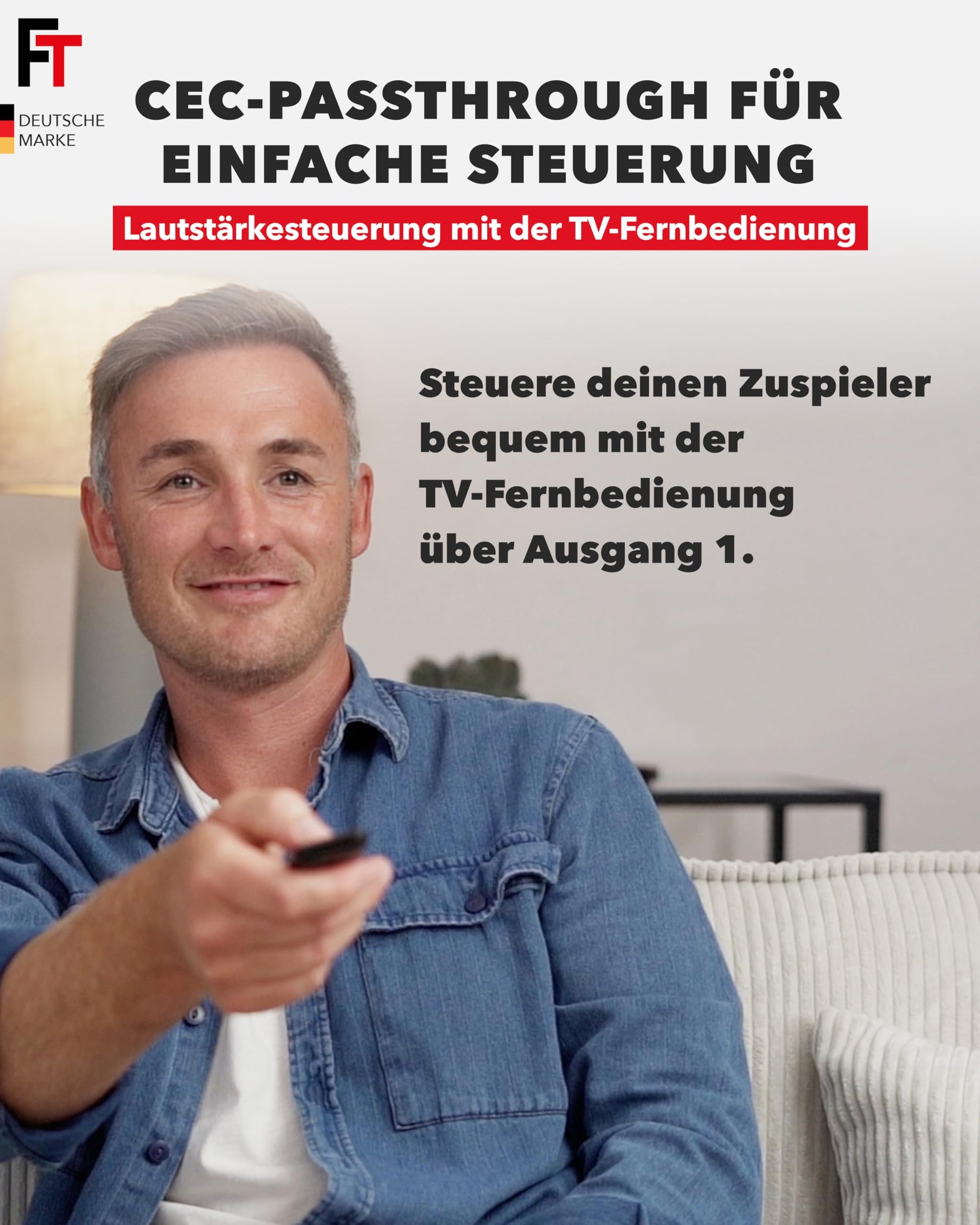 - CEC-Steuerung: Dank der CEC-Pass-Through-Funktion können Sie Ihr Quellgerät bequem mit der Fernbedienung des Hauptbildschirms (z.B. TV) bedienen. Dies erlaubt auch das automatische Ein- und Ausschalten der Geräte.
