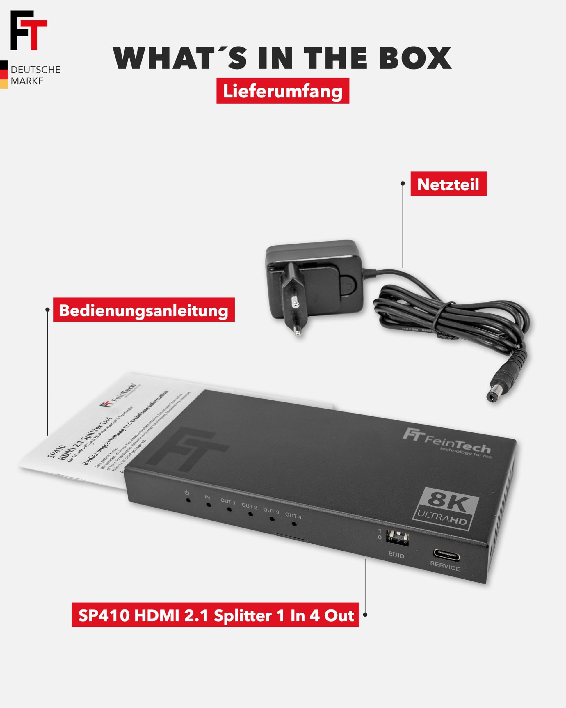 FeinTech SP410 HDMI 2.1 Splitter - 1 In 4 Out, 4K 120Hz 8K