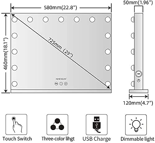 FENCHILIN Hollywood Schminkspiegel Tischspiegel – 15 LED, USB-C
